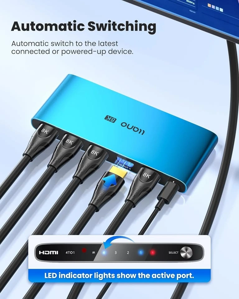 HDMI 2.1 Switch 4K@120Hz 8K@60Hz 4 in 1 Out