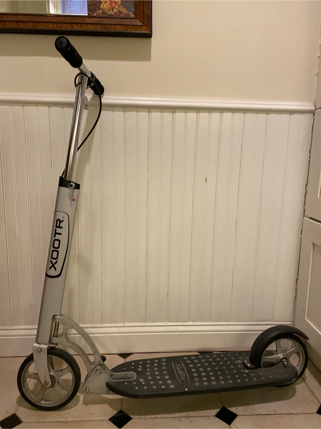Selling a used Xootr scooter for adults. It is silver and black. It's in good condition and ready for a new home!