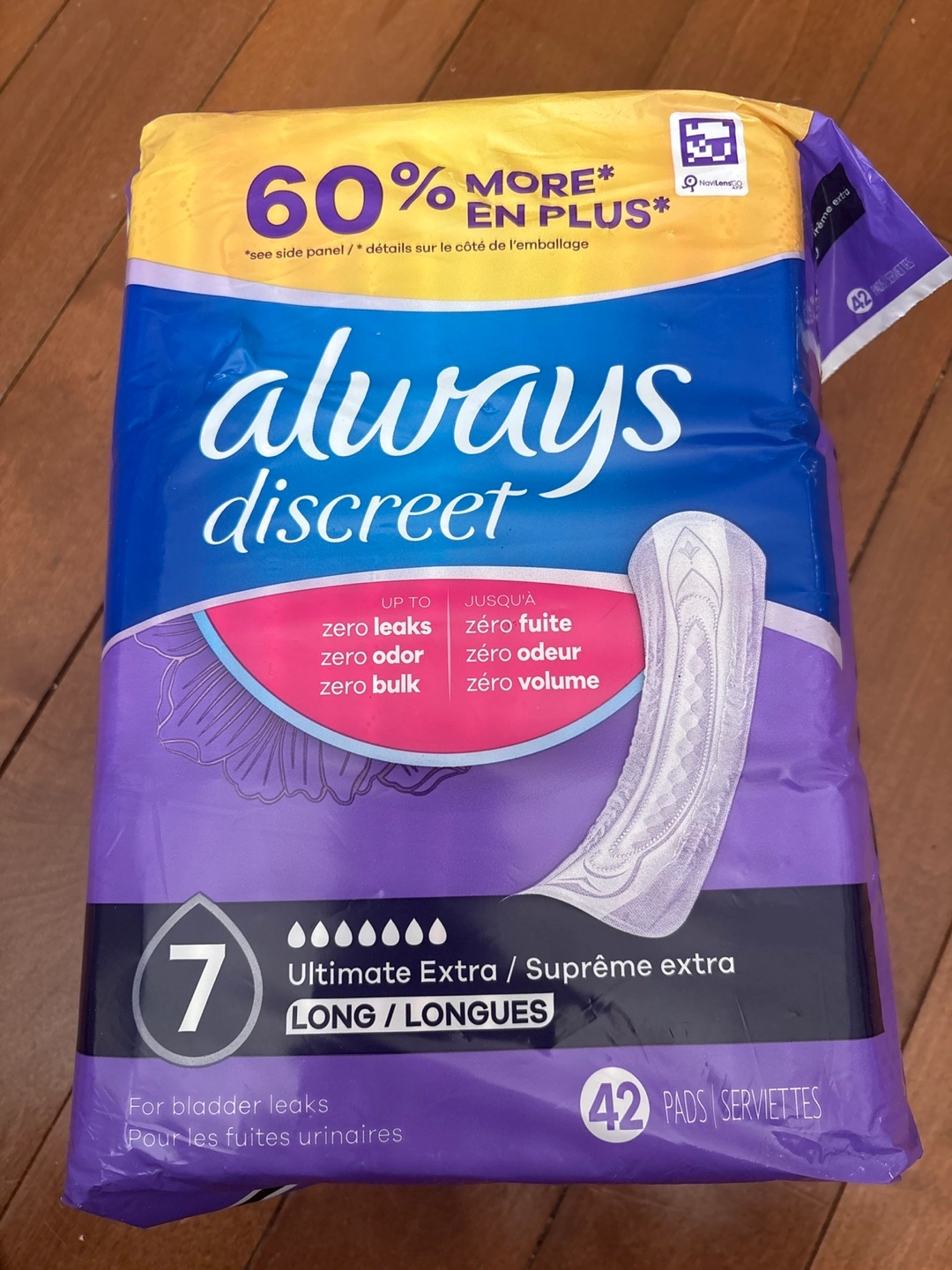 Selling a package of Always Discreet Ultimate Extra Long pads. It contains 42 pads and is designed for bladder leaks, offering zero leaks, odor, and bulk. Perfect for those needing extra protection and discretion! Retail for close to $40.