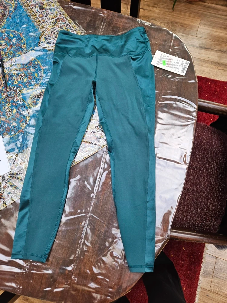 The material is Everlux, which is breathable and wicks away sweat. They feel soft on the outside and cool and sleek next to your skin. The fabric content is 77% nylon and 23% Lycra elastane. There are also satin fabric panels for added shine and style