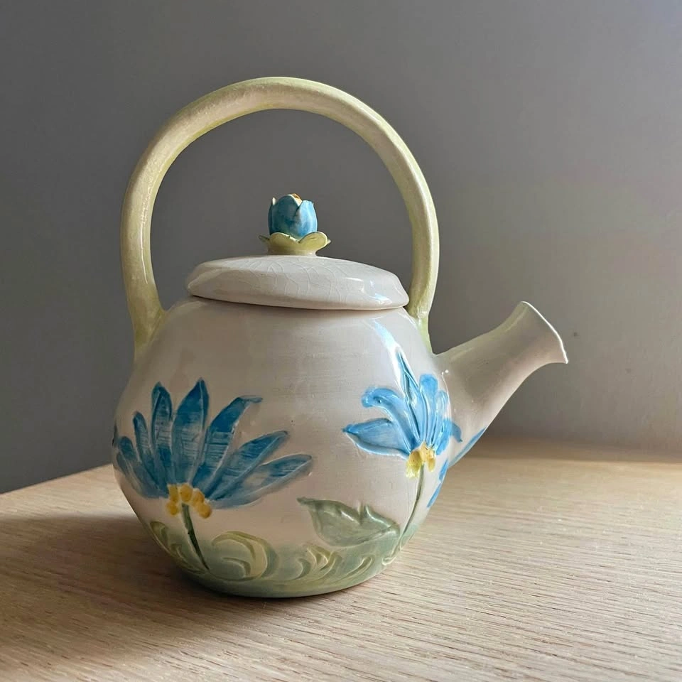 Handmade Studio Pottery Floral Teapot
