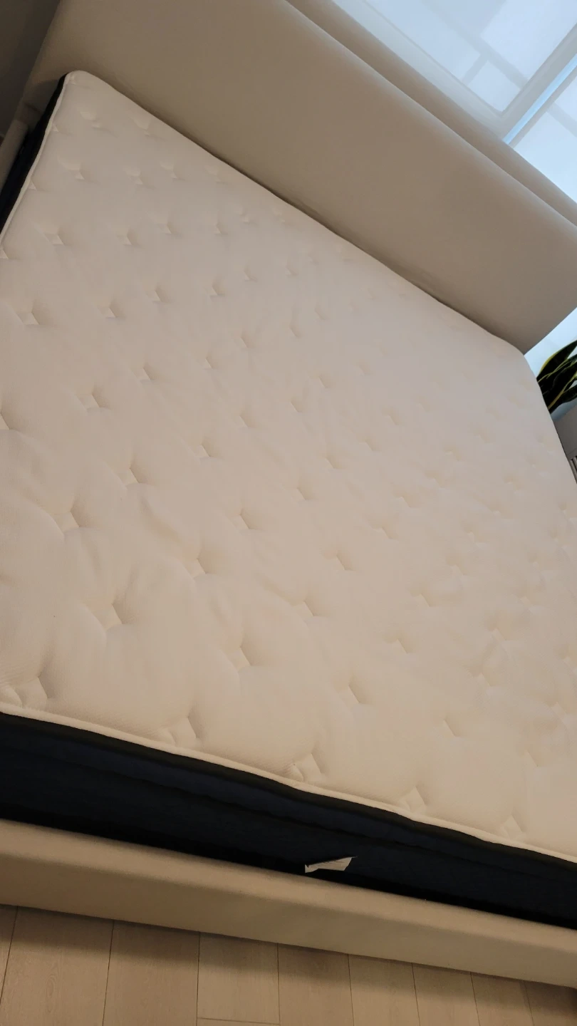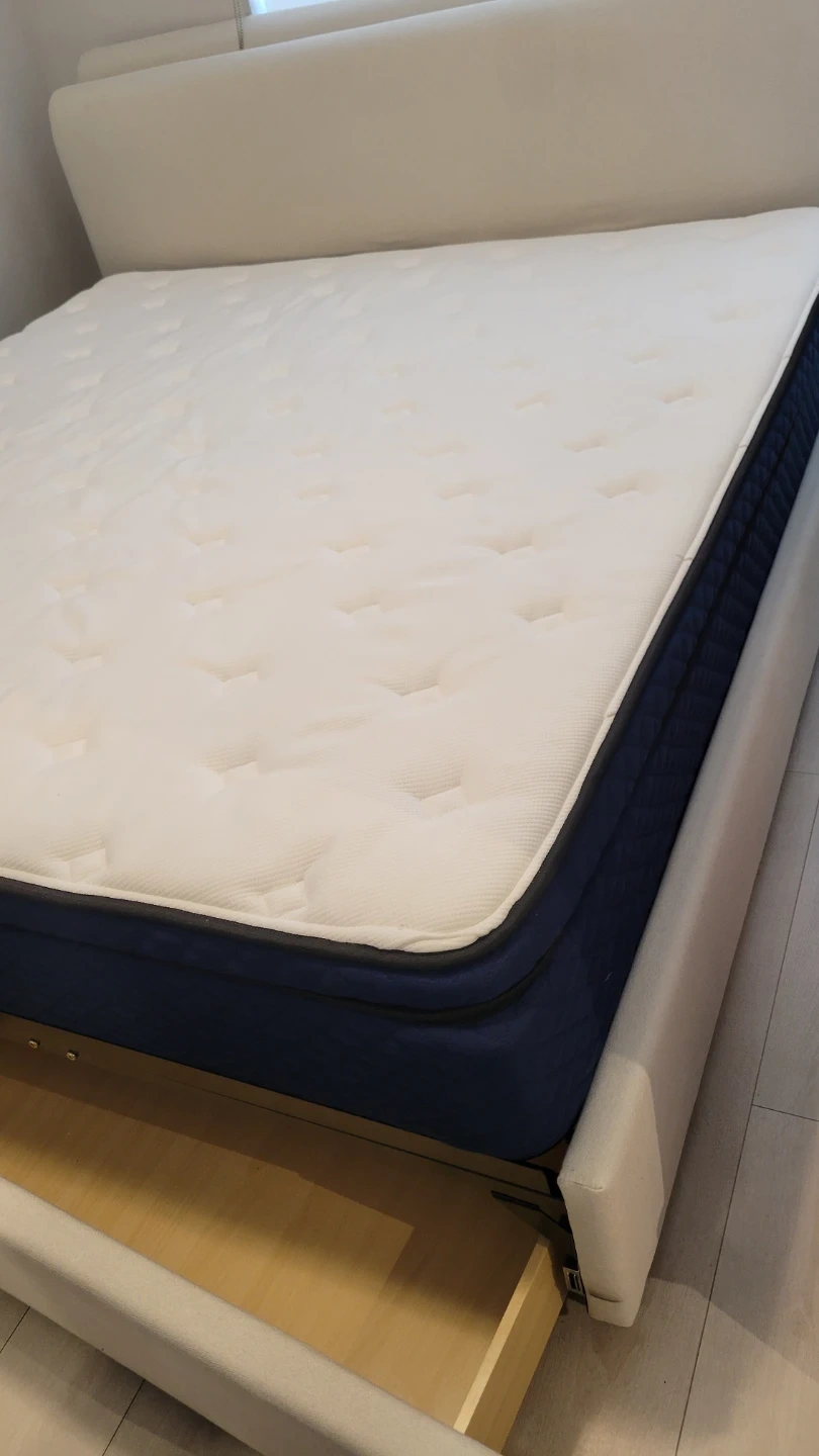 Selling a bed frame in almost condition! It features a simple, upholstered design that would look great in any bedroom. The neutral colour makes it easy to match with your existing decor. Let me know if you're interested!