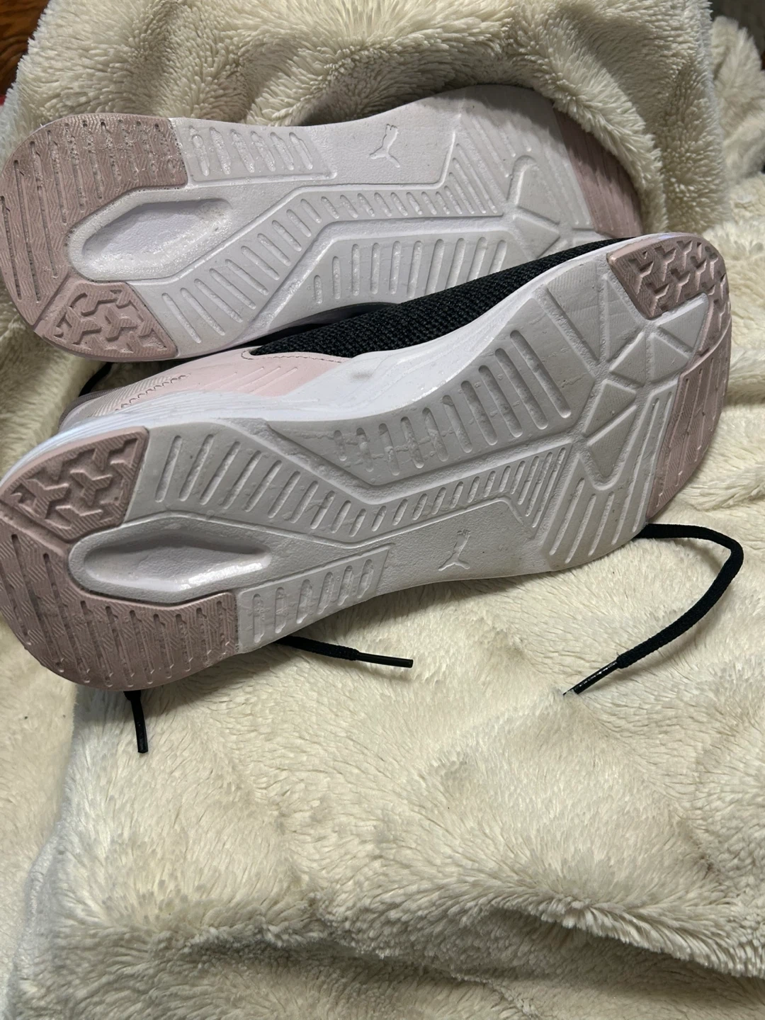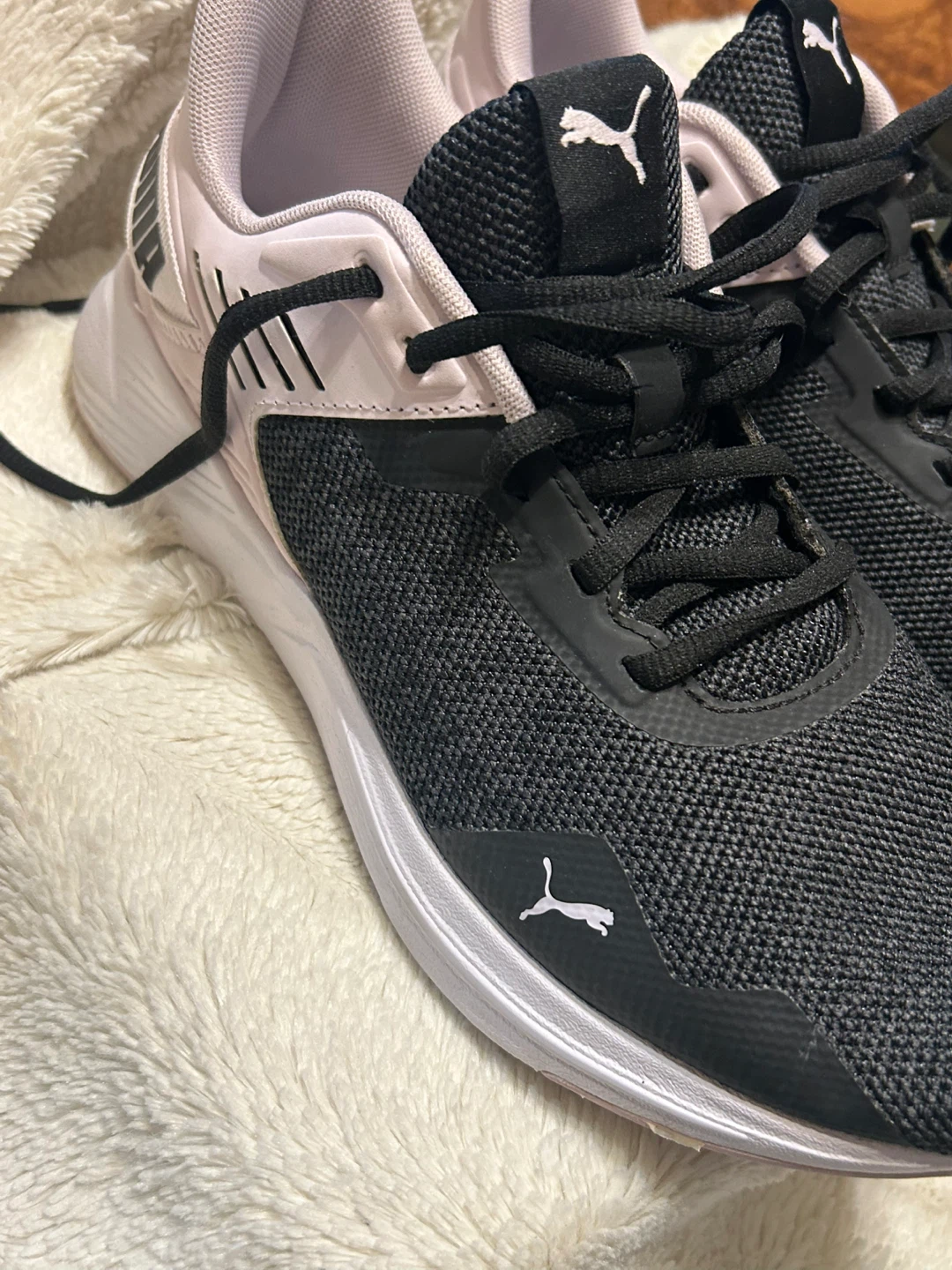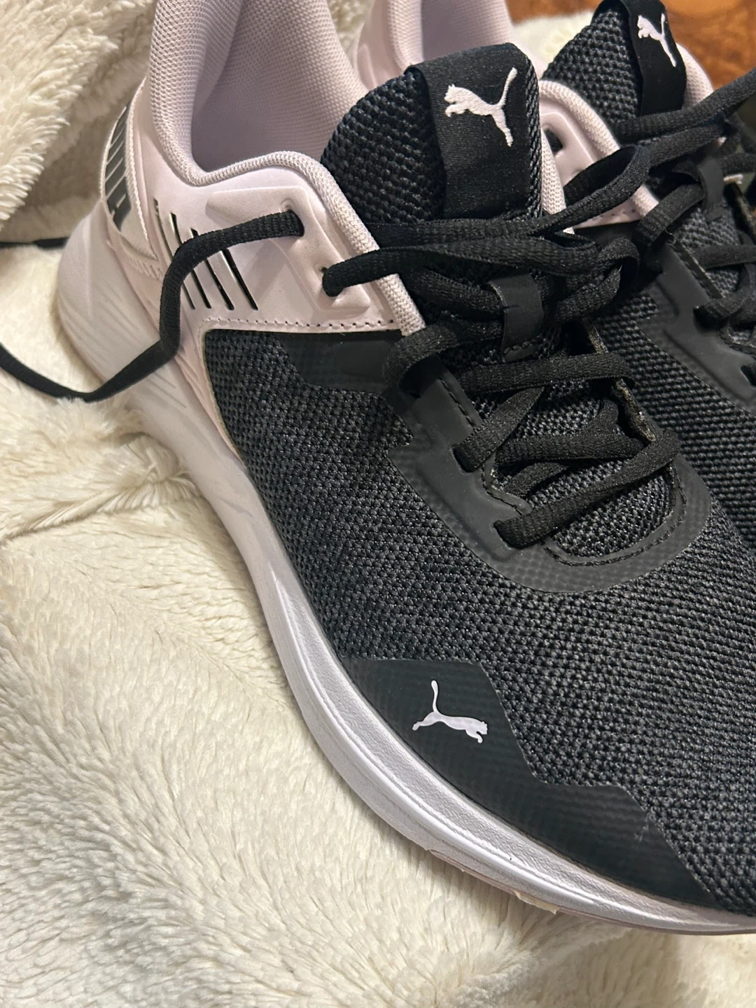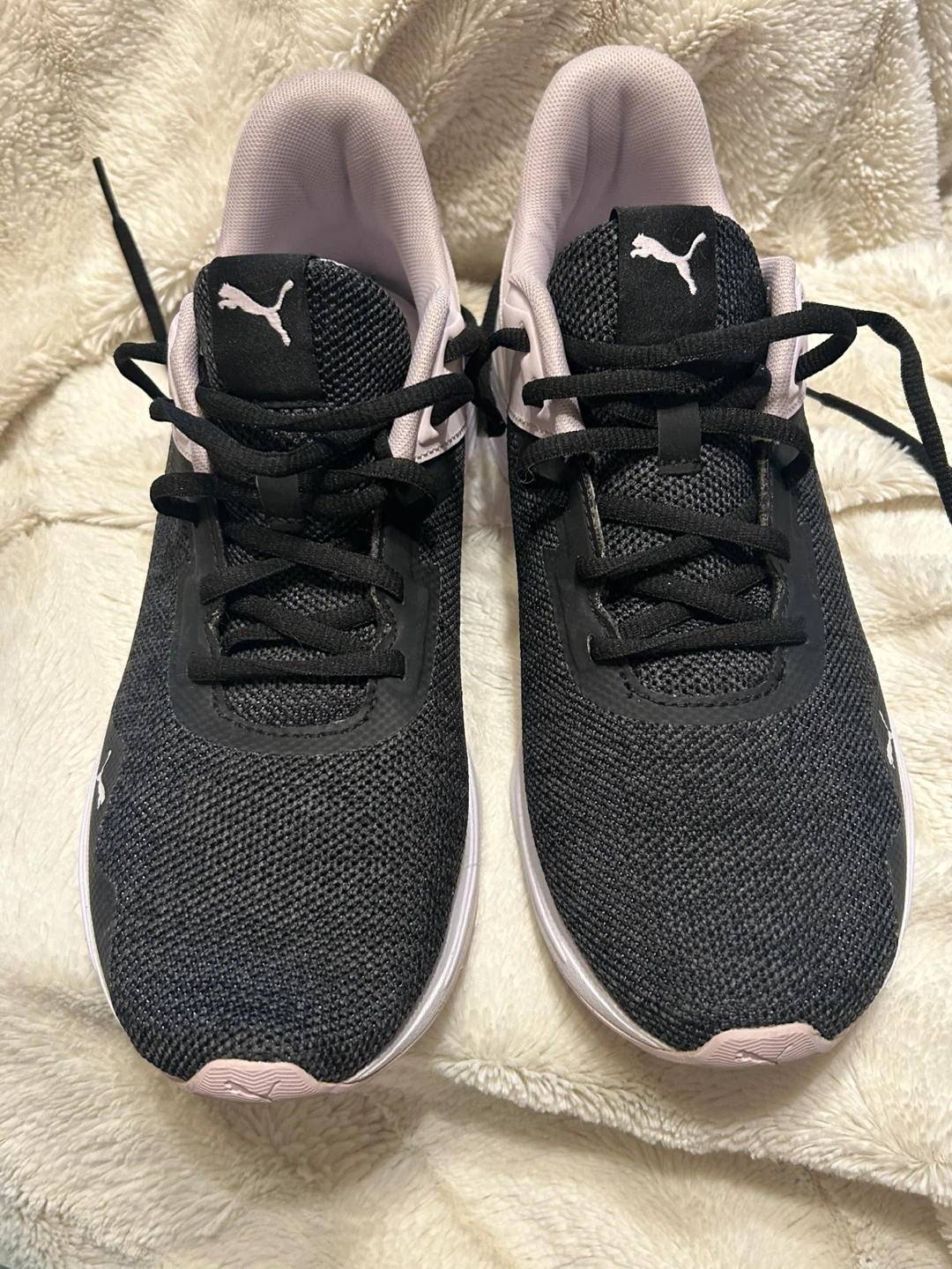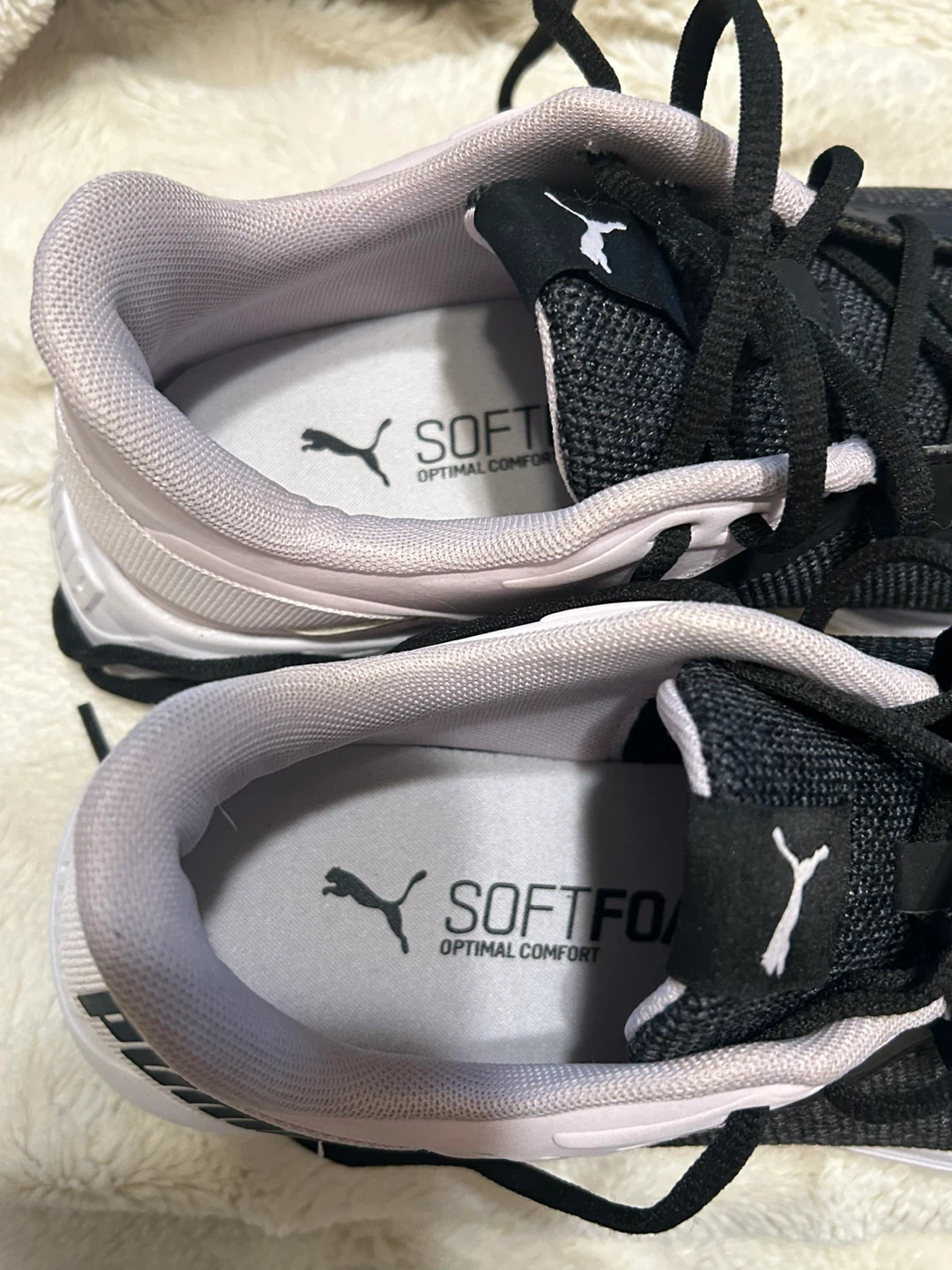 Selling a pair of Puma women's running shoes in size 10. They feature a black and light purple colour scheme and have SOFTFOAM optimal comfort insoles. Perfect for running or everyday wear!