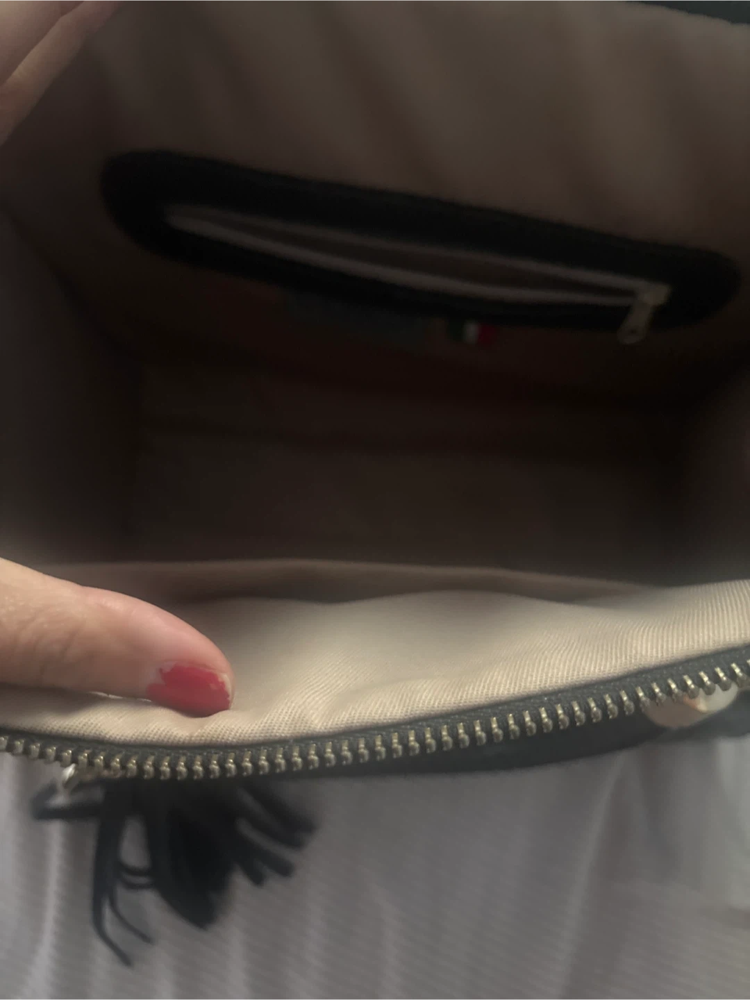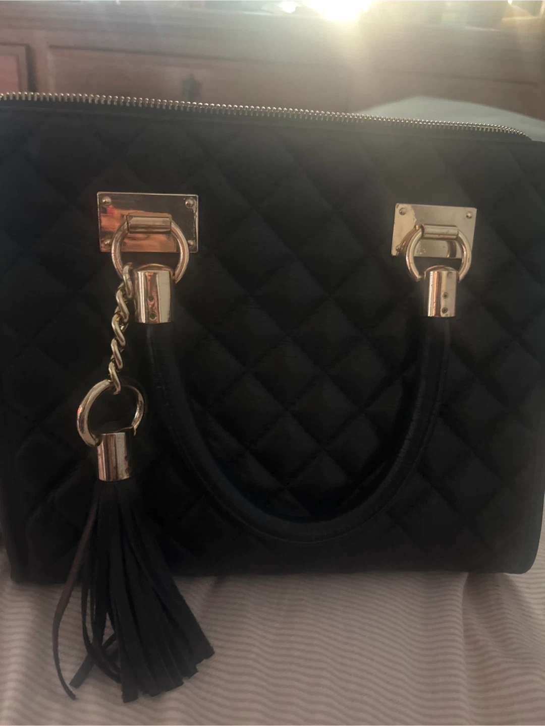 Selling a stylish black quilted handbag. It's in great condition and has a chic design that's perfect for any occasion. The bag features a zipper closure and a tassel detail, adding a touch of elegance. It's a versatile accessory to complete your look!