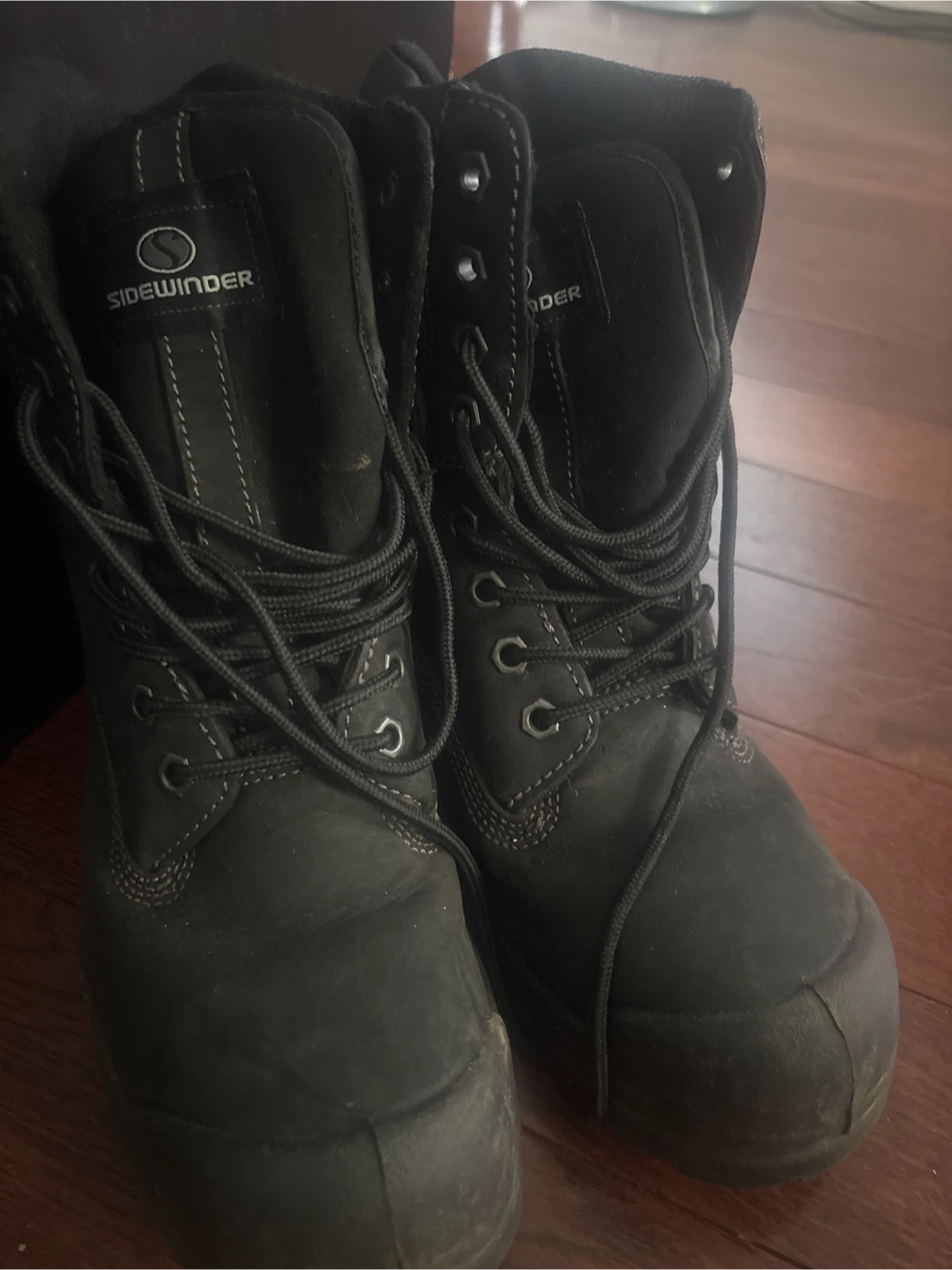 Selling a pair of Sidewinder work boots in black. They're in good condition and ready for a new home. Great for tough jobs and provide excellent support and protection!