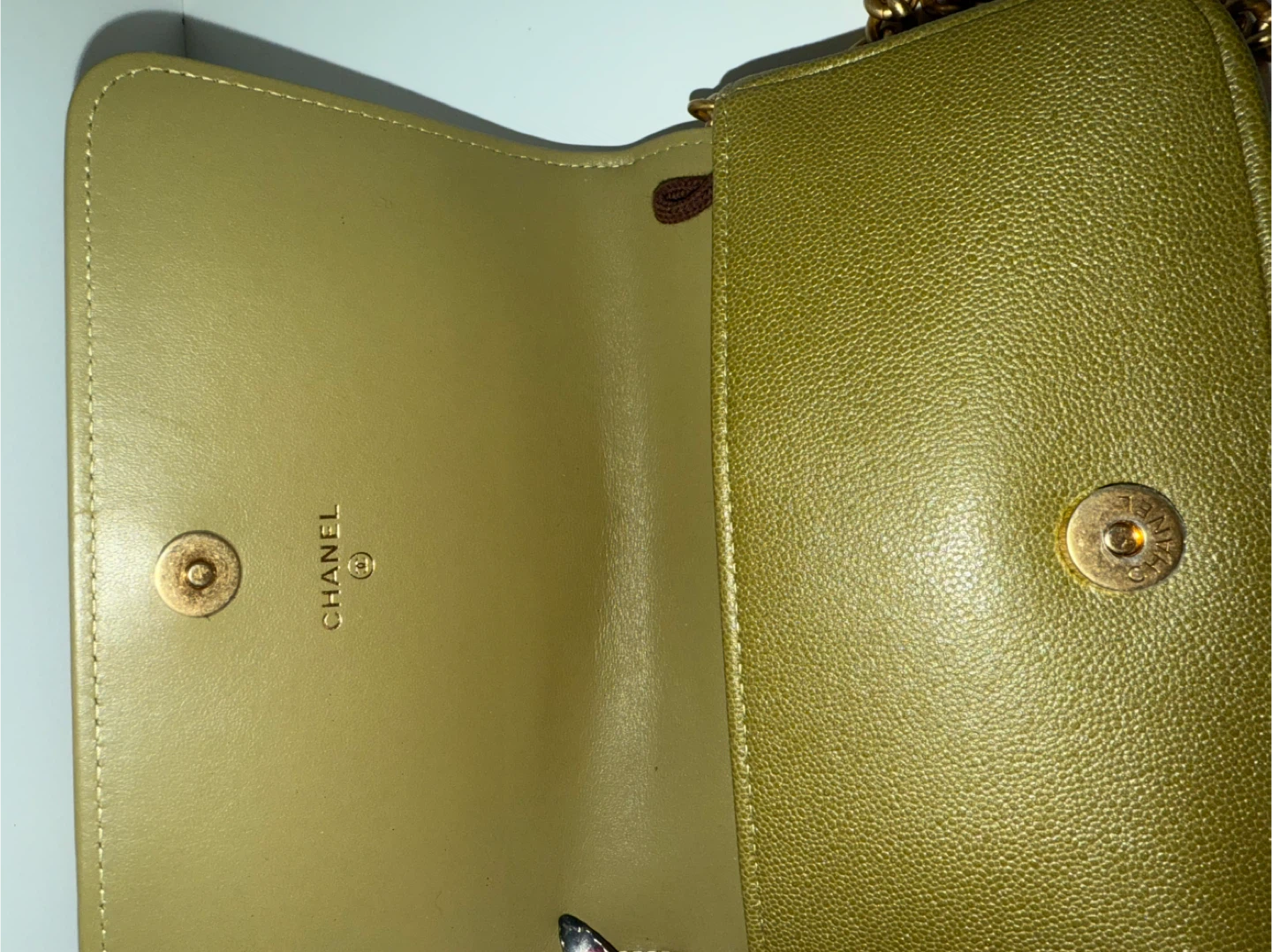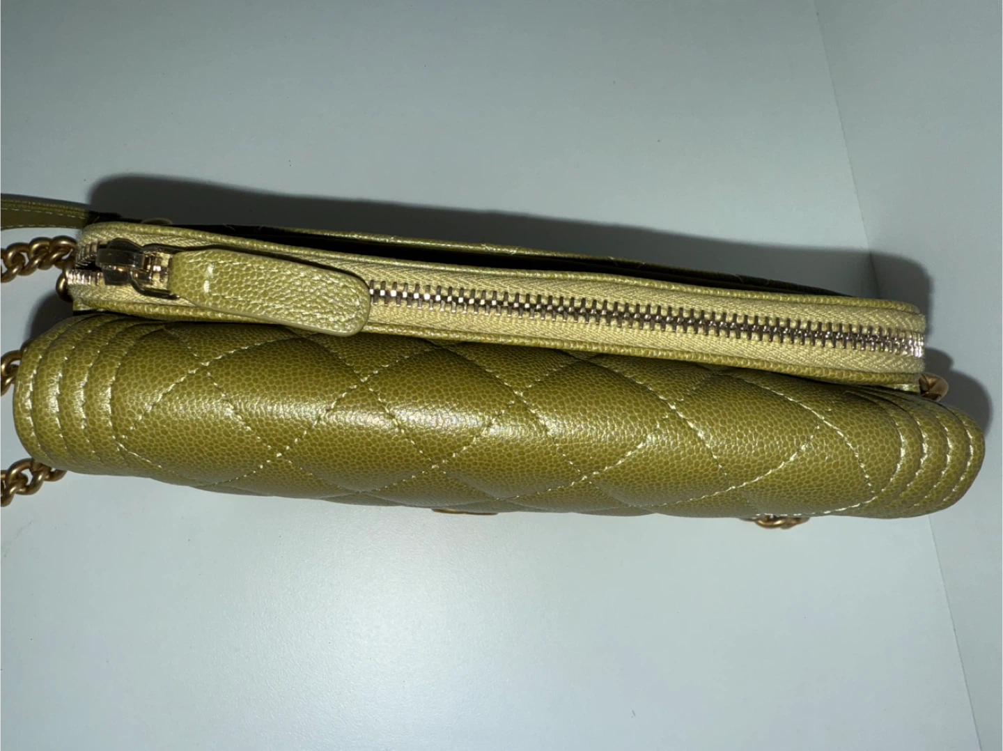 Chanel Boy Olive Green Chain Wallet