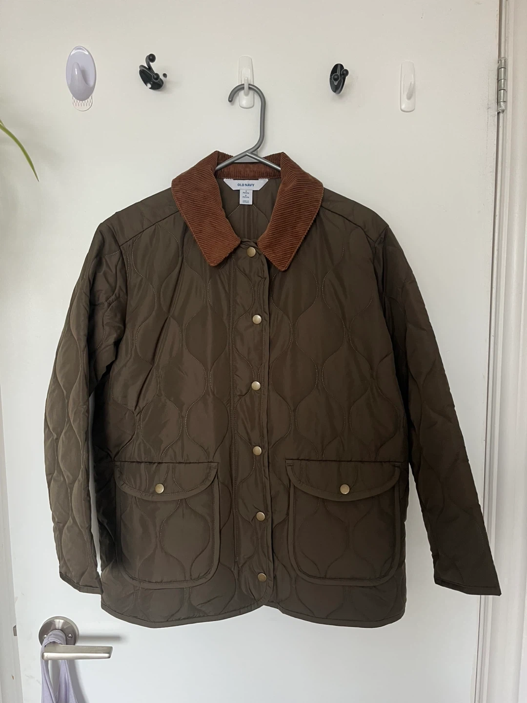 Selling a brand new Old Navy quilted jacket in a lovely olive green colour! It features a corduroy collar and is a size medium. Perfect for layering during the cooler months!