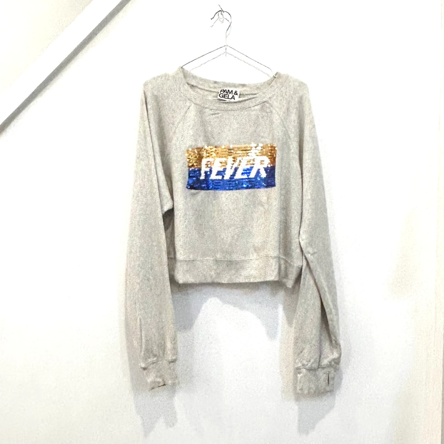 Pam & Gela sweatshirt! It's a size small and features a fun sequin design that says "FEVER". It's in great condition and ready for a new home! Super soft, no pills, no rips, no stains!