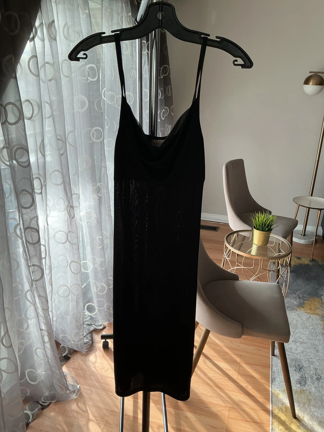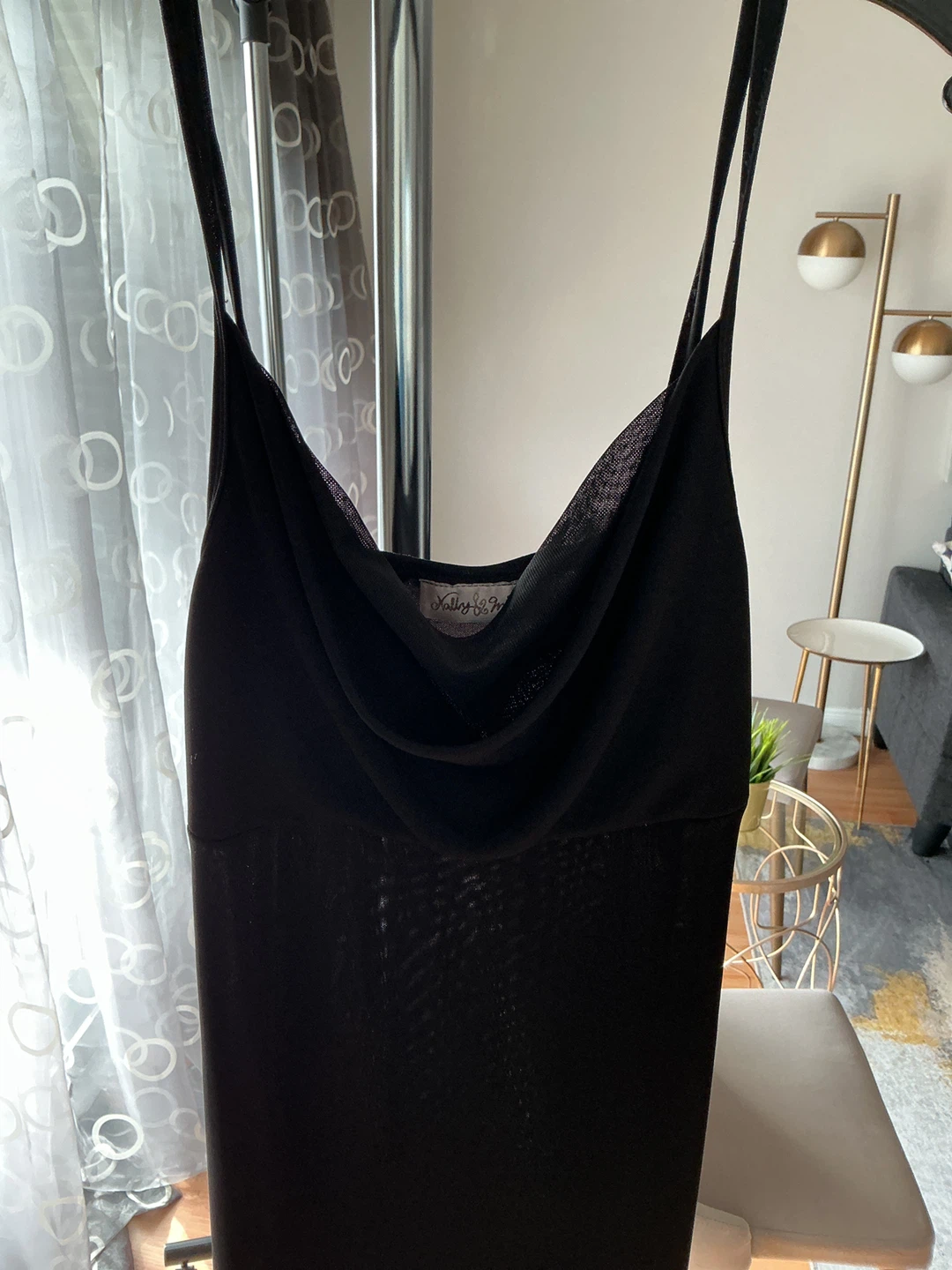 Selling a gorgeous Holly & Millie little black dress — the perfect blend of classy and sexy. Features a soft cowl neckline, sheer mesh detailing, and a sleek straight silhouette. The ultimate go-to dress for date nights, cocktails, vacations, or any event where you want a timeless, effortless look.
