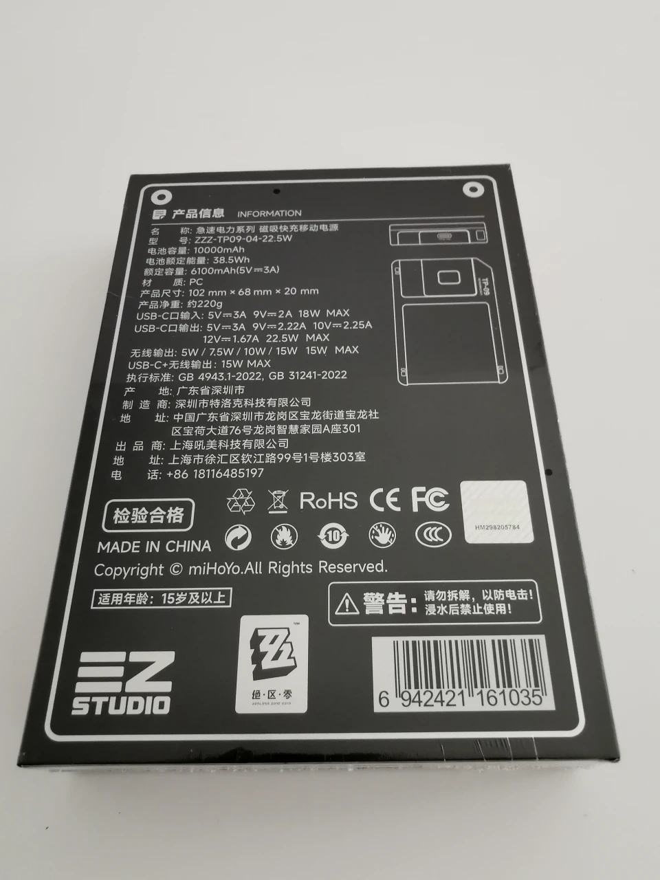 This is a brand new sealed MiHoYo magnetic power bank with a 10000mAh battery and 22.5W max power, featuring wireless charging and a USB-C port. Never been opened, still in the original packaging, ready to juice up your devices on the go!