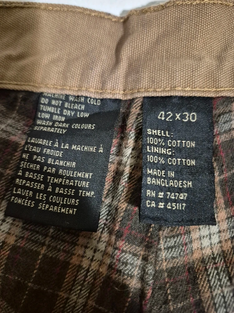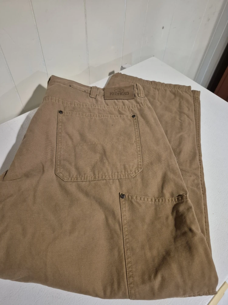 Selling a pair of RedHead carpenter flannel lined pants in size 42x30. They are made of 100% cotton for both the shell and lining. These pants have a classic, durable feel and are ready for any project.