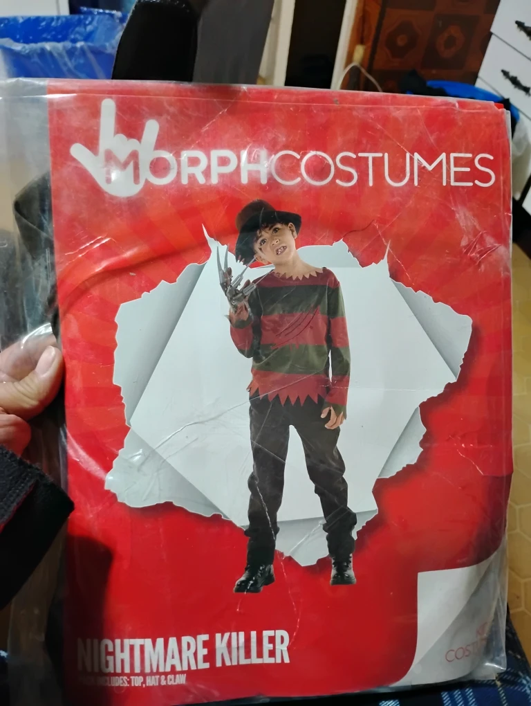 Selling a Morph Costumes Nightmare Killer costume in size M! It includes the top, hat, and claw. Perfect for Halloween or dress-up!