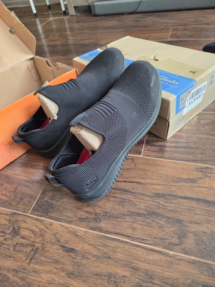 Selling a pair of Skechers slip-on shoes in black! They come with the original box. These are super comfy and easy to wear, perfect for everyday activities