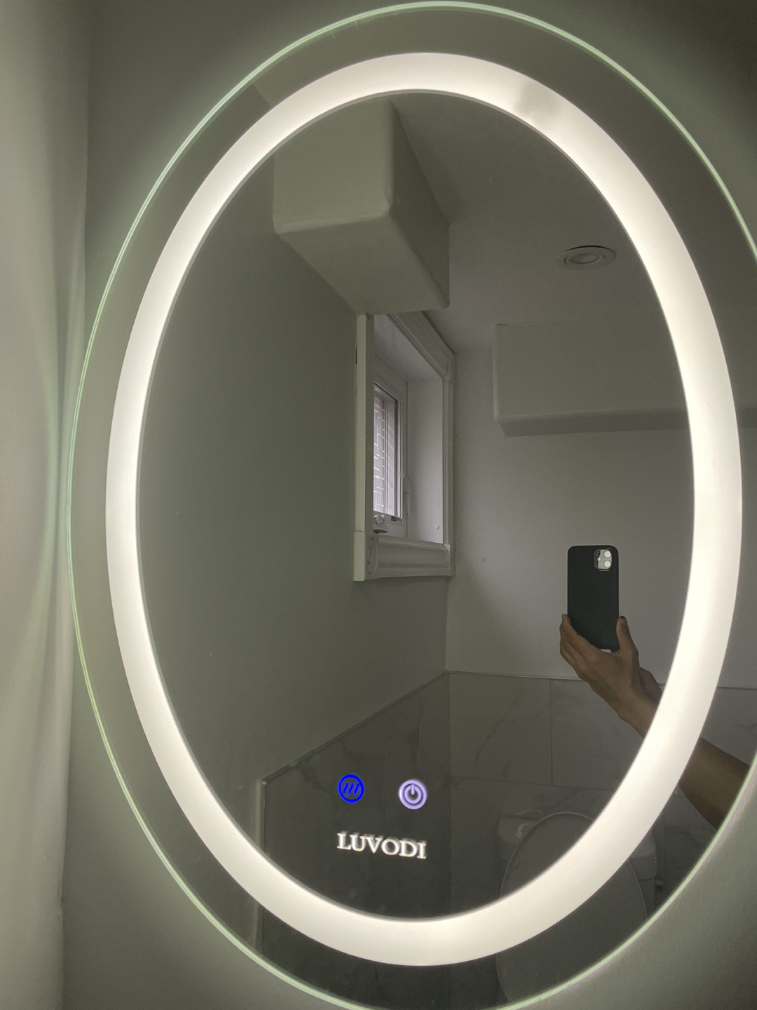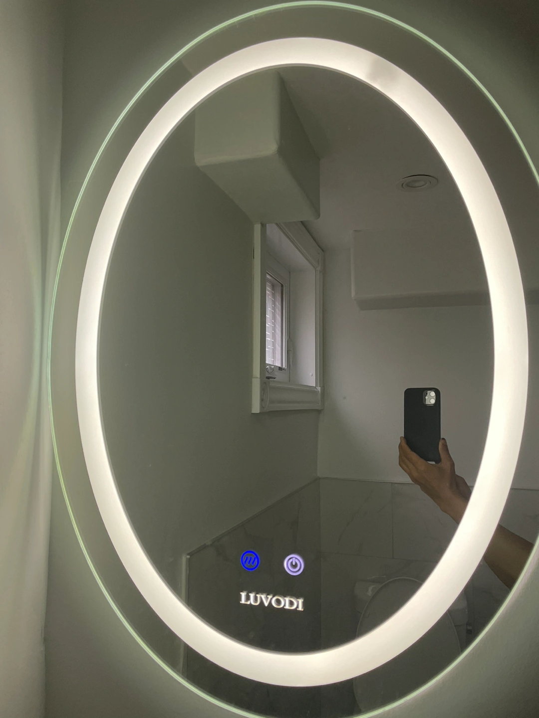 Beautiful led yellow and-soft white setting . frost free setting . Good for taking pictures and making videos.New bid ovel shape.selling this because of renovation.