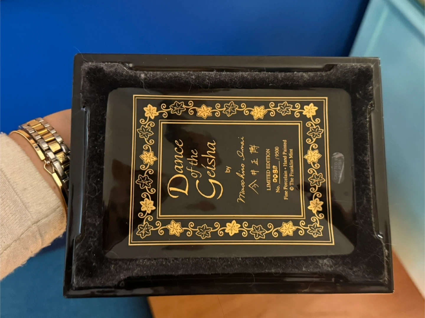 This is a lovely vintage porcelain figurine of a Geisha. It features intricate details and a beautiful colour palette. It would be a great addition to any collection or as a decorative piece in your home