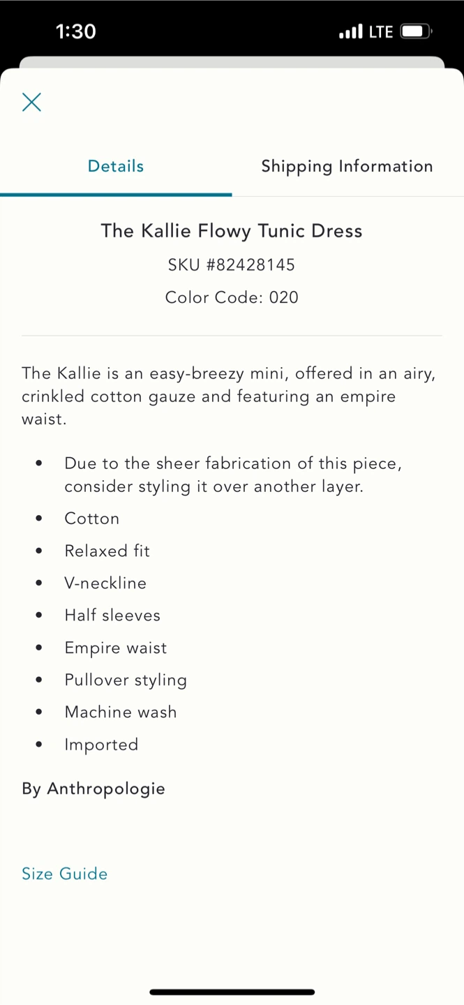 BNWT Anthropologiee Kallie Cotton Flowy TUNIC Dress BROWN XS