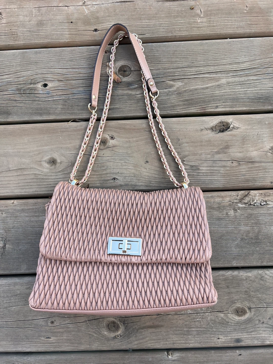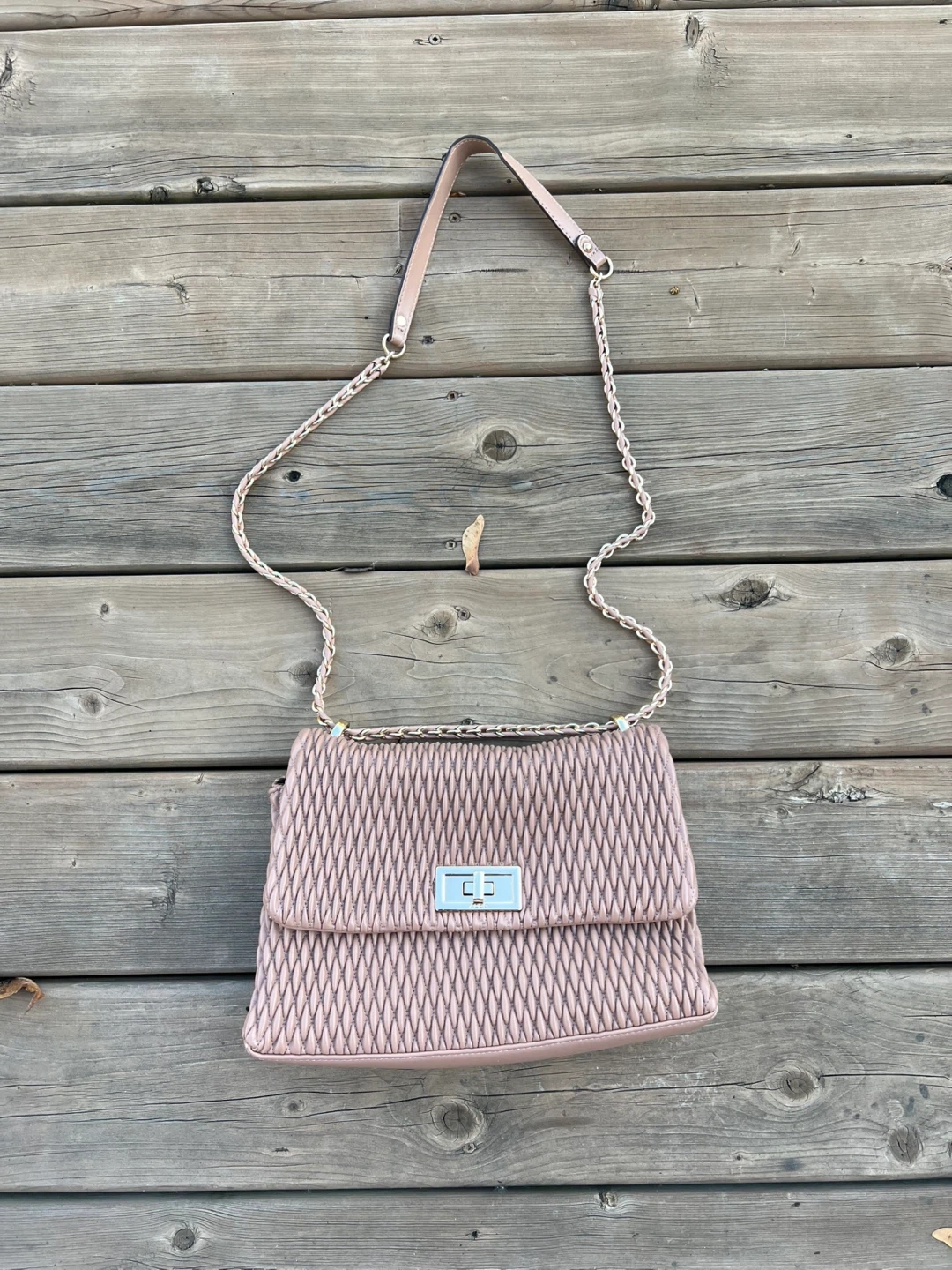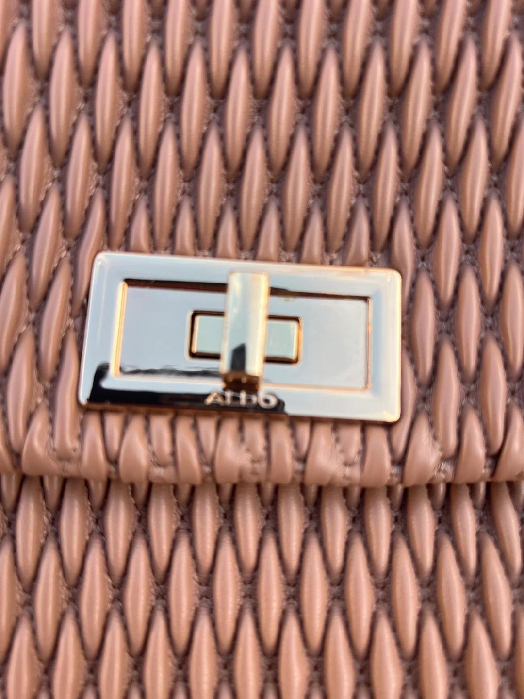 Selling a gently used ALDO shoulder bag in a lovely pink quilted design! It's perfect for adding a touch of elegance to any outfit. The bag features a chain strap and a secure closure, making it both stylish and practical. Inside, there's plenty of room for your essentials, with a zippered pocket to keep things organized