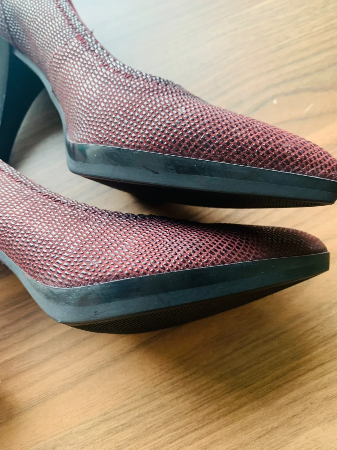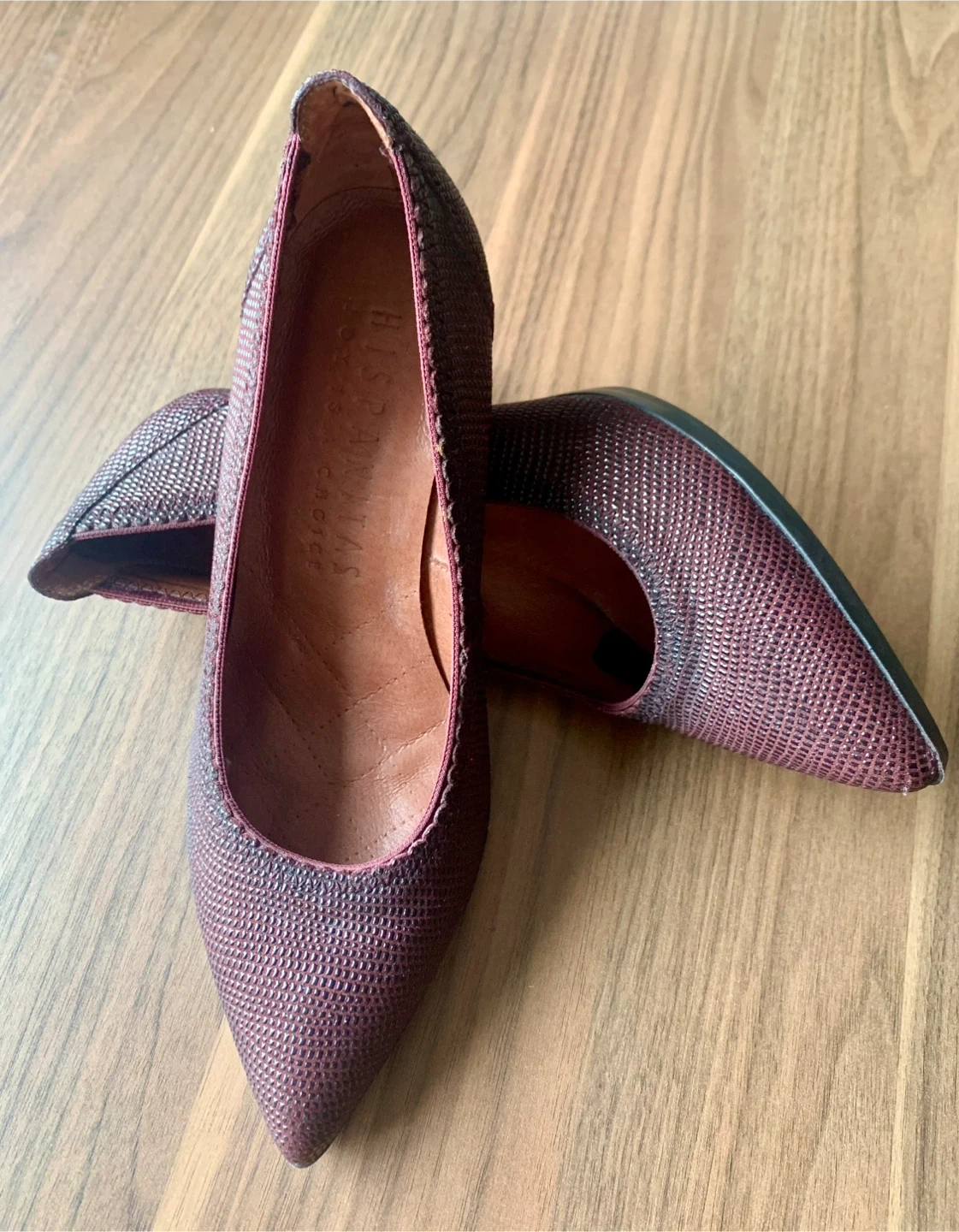 Selling a pair of Hispanitas heels in size 36. They have a unique burgundy colour, a stylish pointed toe and a slight platform sole. Heels are 3”. Perfect for dressing up or adding a touch of elegance to your everyday look!
