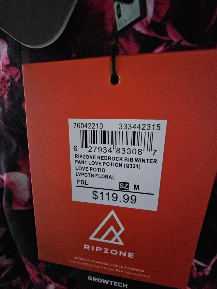BRAND NEW. These Ripzone Redrock bib winter pants are in a beautiful Love Potion Floral pattern! They're a size medium and feature Growtech.