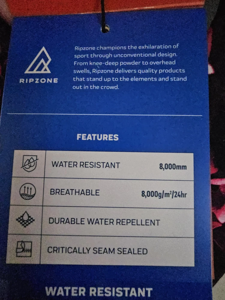 - Water resistant (8,000mm)