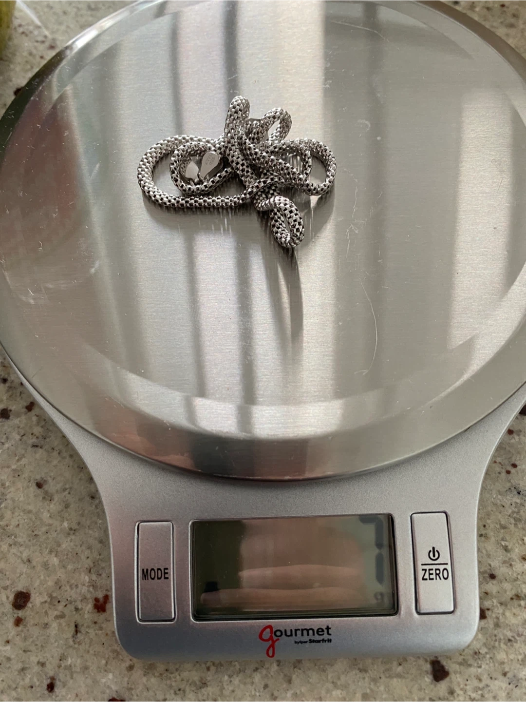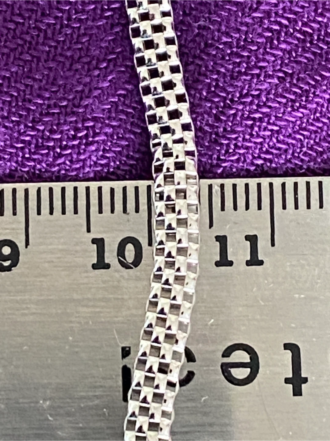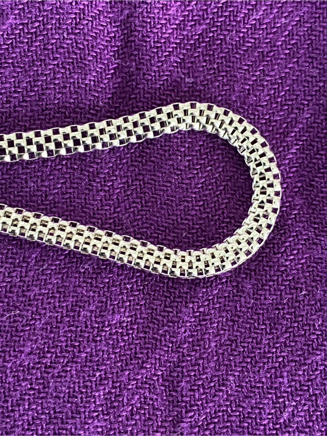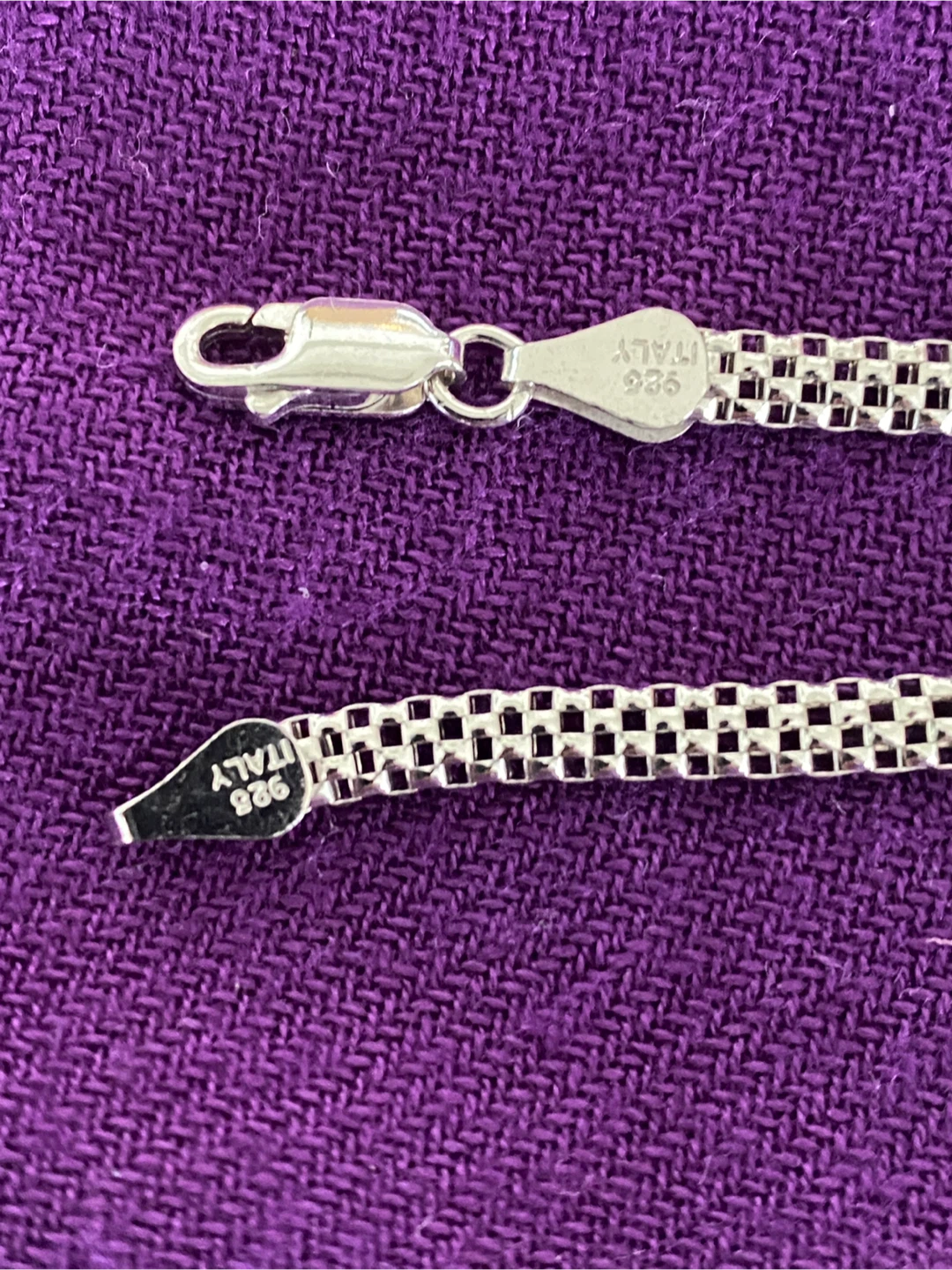 This is a 925 Italy silver popcorn chain necklace. It looks to be about 18 inches long. In a great condition-ycheck the pictures for details.