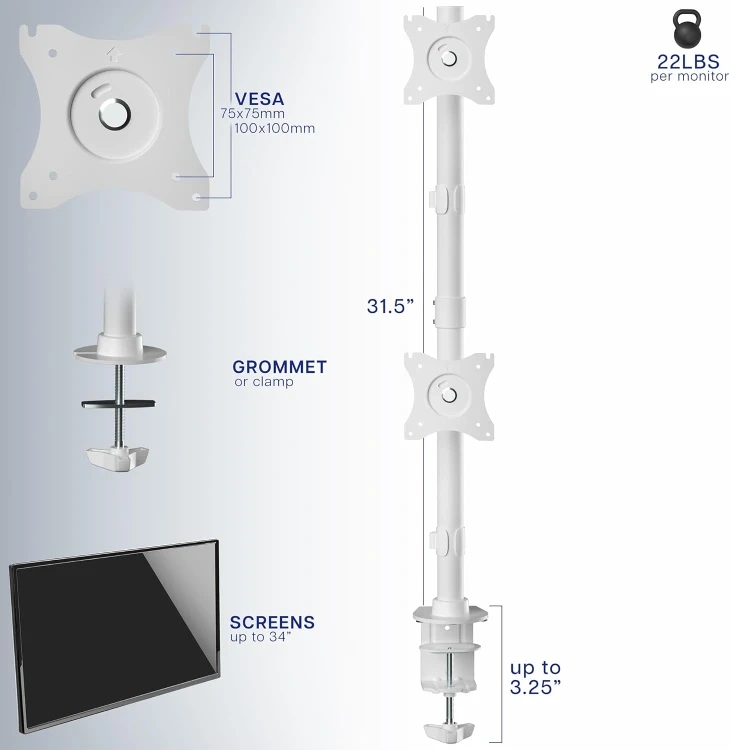 VIVO Dual Monitor Desk Mount Stand with Height Adjustment and VESA Plates for 2 LCD Ultrawide Screens up to 34 inches, Stacked Array, STAND-V002RW