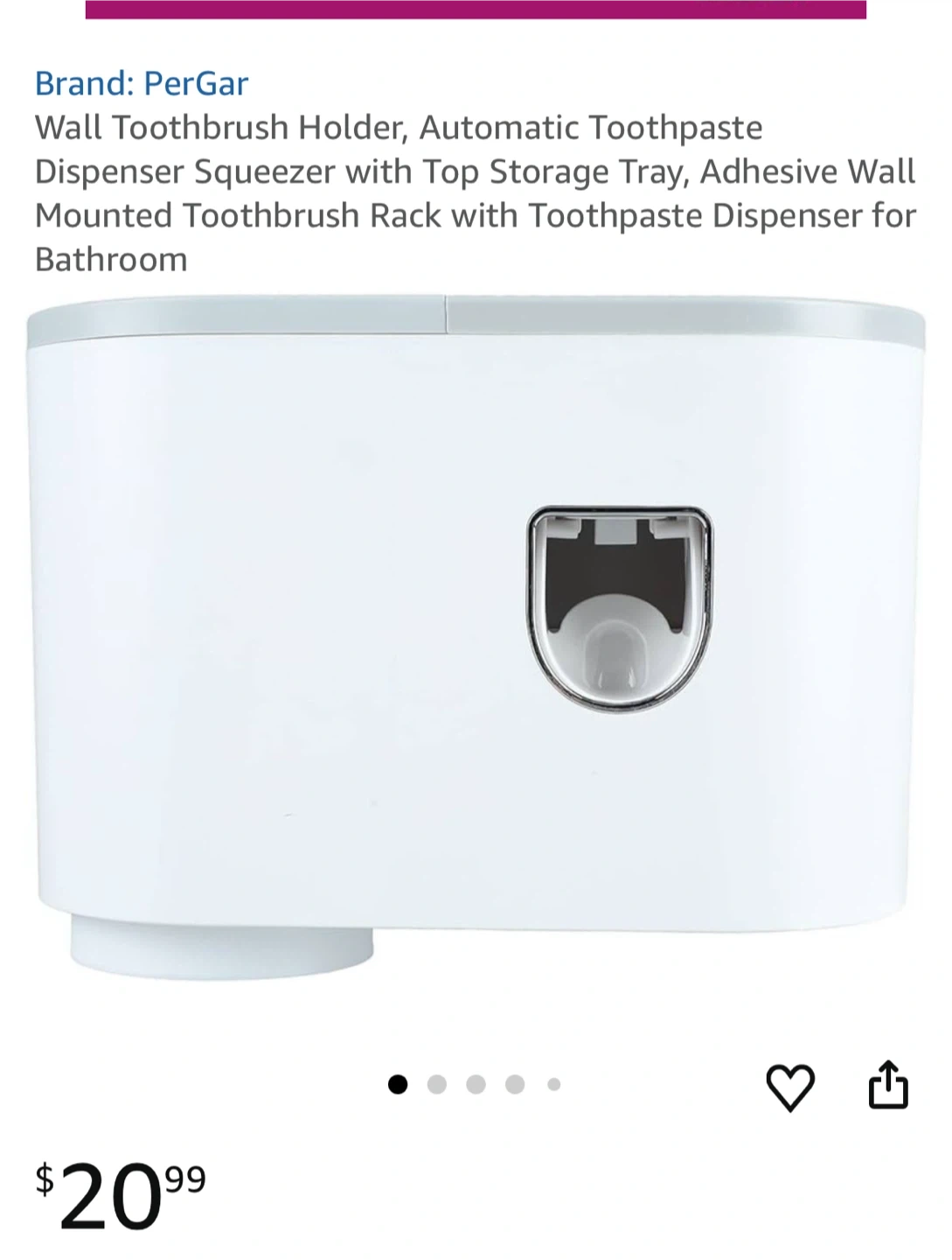 Selling a wall-mounted toothbrush holder and automatic toothpaste dispenser! It features a top storage tray and an adhesive wall mount. It's a great way to keep your bathroom organized and tidy