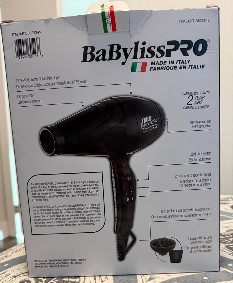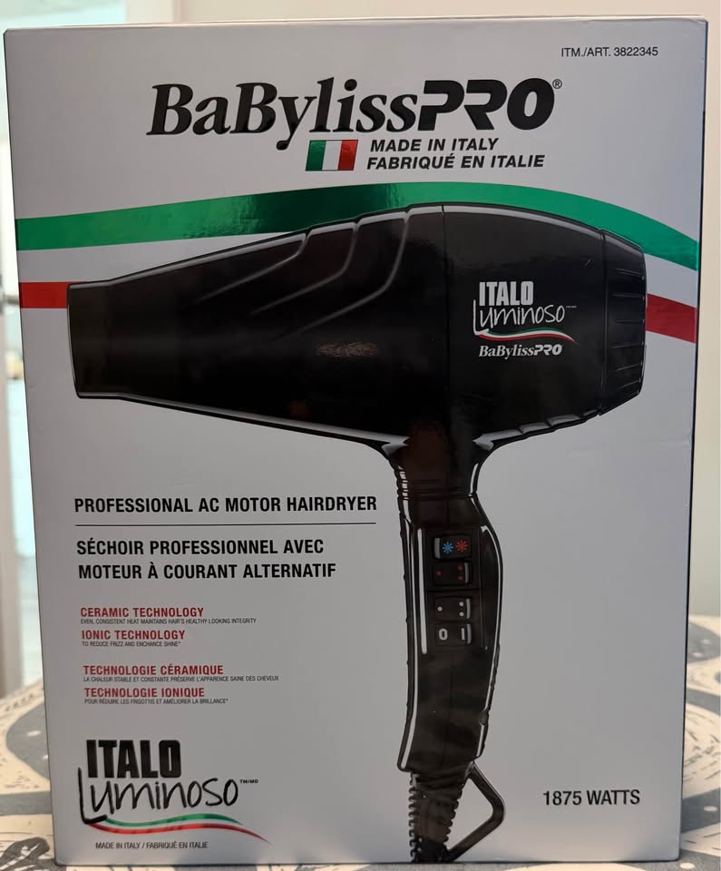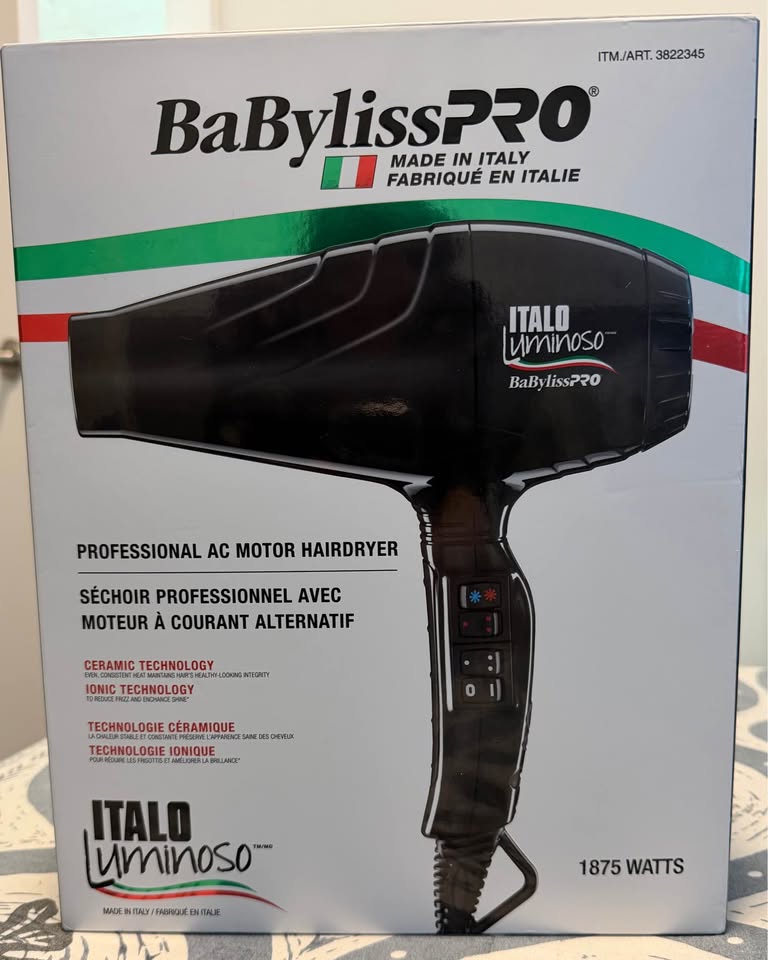 Selling a BaByliss Pro Italo Luminoso Ceramic Hair Dryer, kept in excellent condition and works flawlessly.