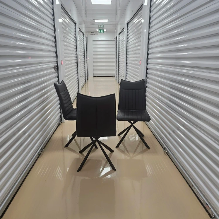 Selling a set of 4 stylish black dining chairs. They have a sleek design and would look great in any dining room or kitchen. They're in good condition and ready for a new home!