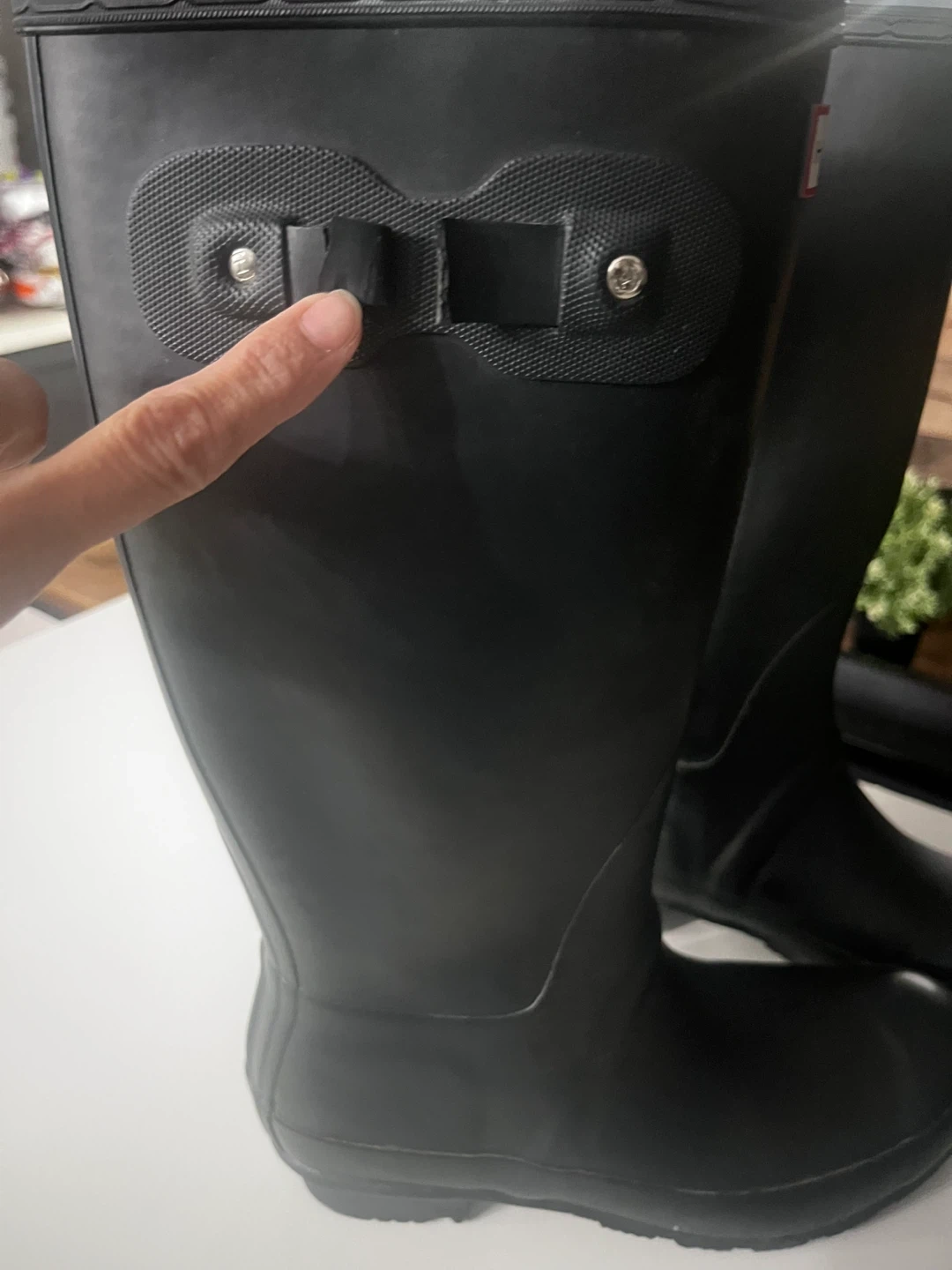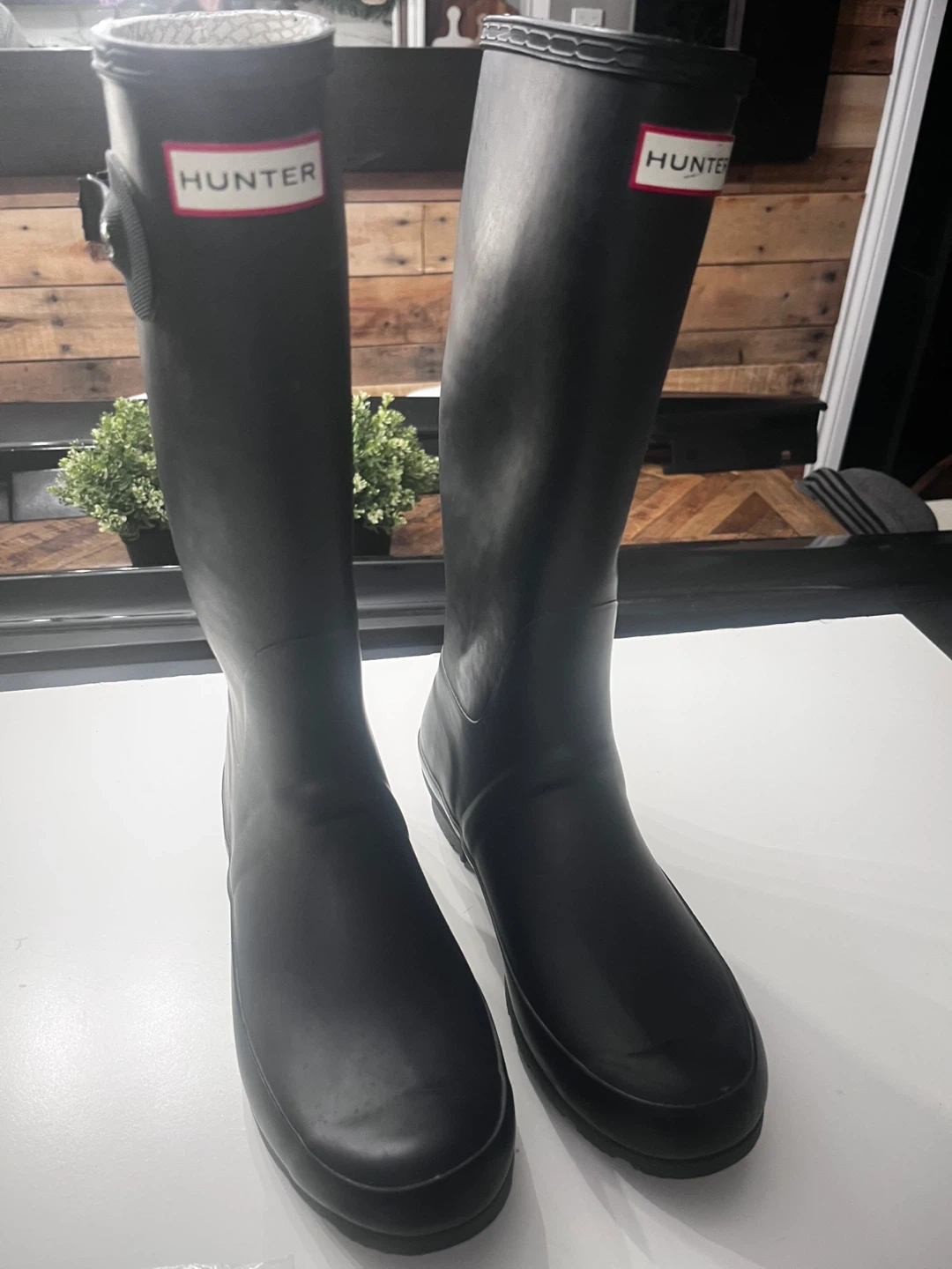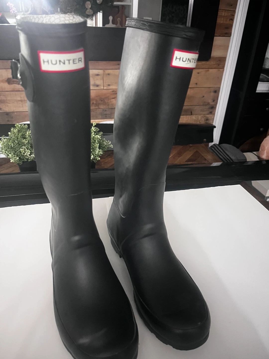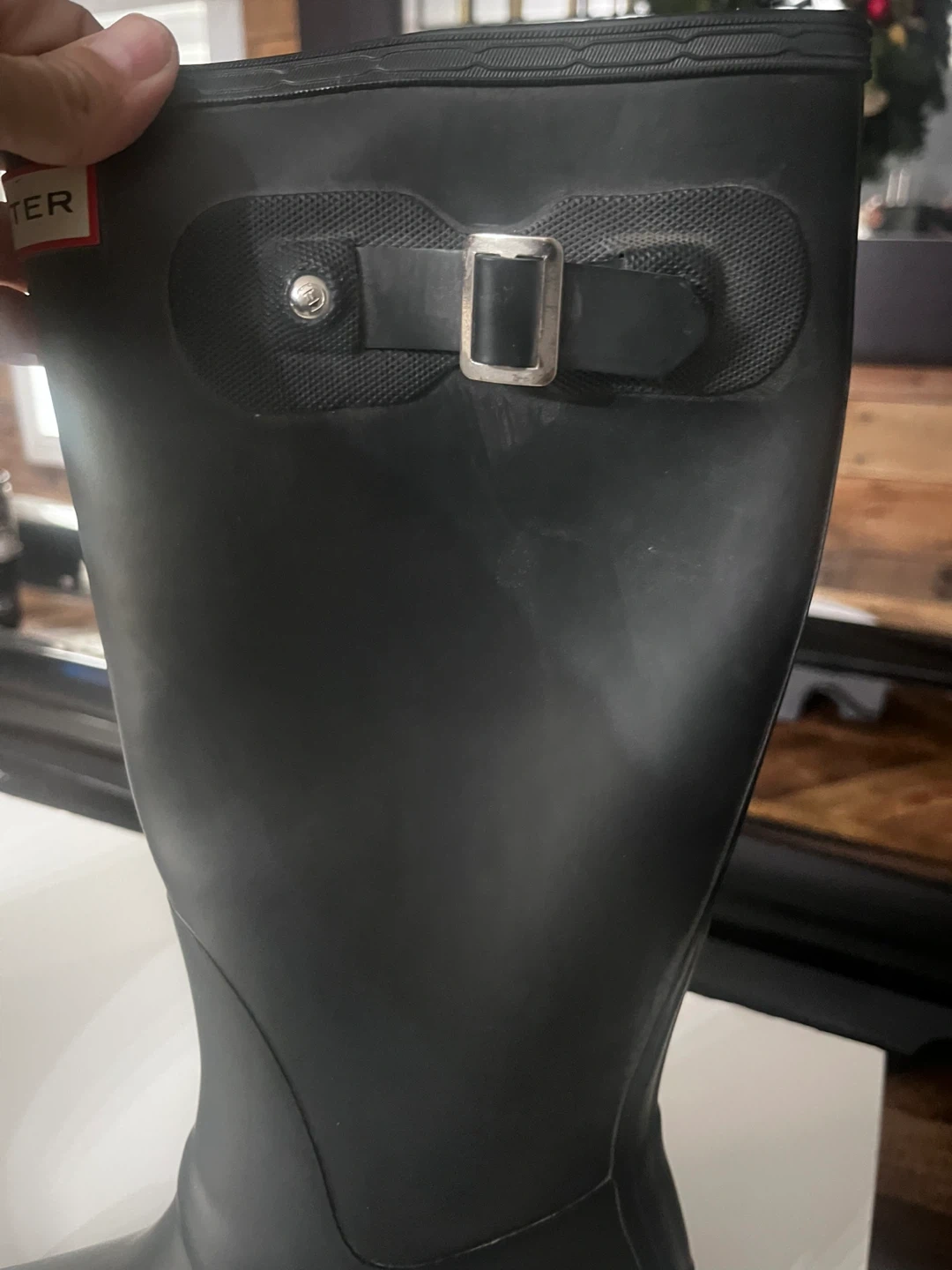 Selling a pair of Hunter rain boots in black. They're in good condition and ready for the rainy season! Please note one of the buckled has come off. Not sure if repairable. Please refer to pics. Men’s size 8/ women’s size 9