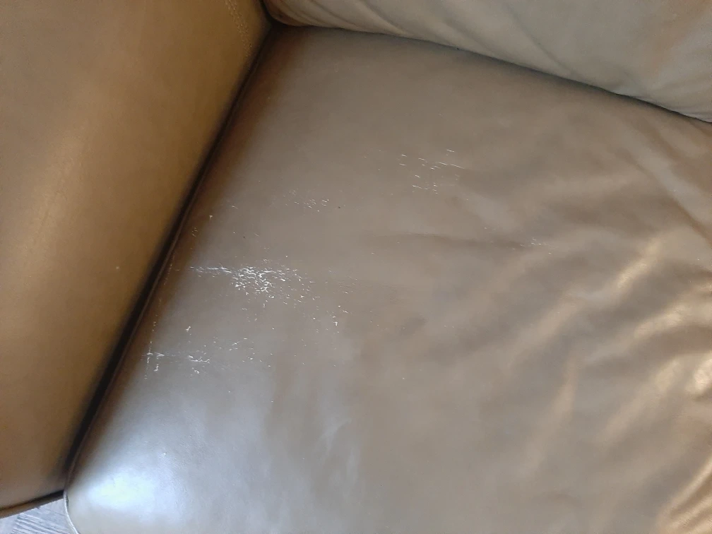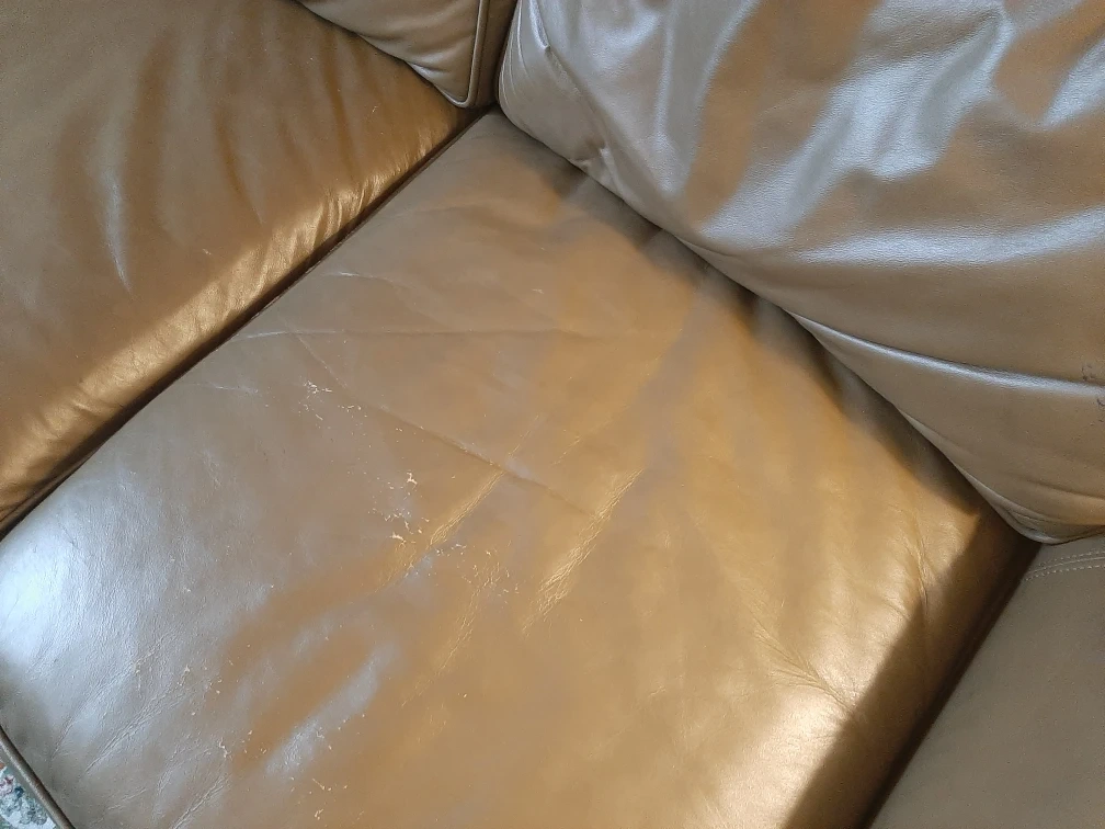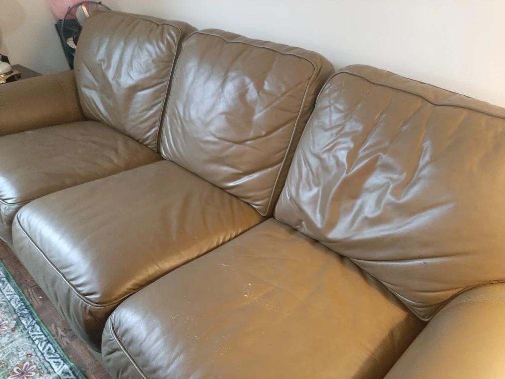 FOR FREE- a comfy leather sofa. It's in good condition and has lots of life left! There are some signs of wear, as shown in the pictures.
