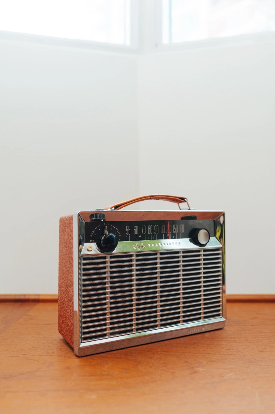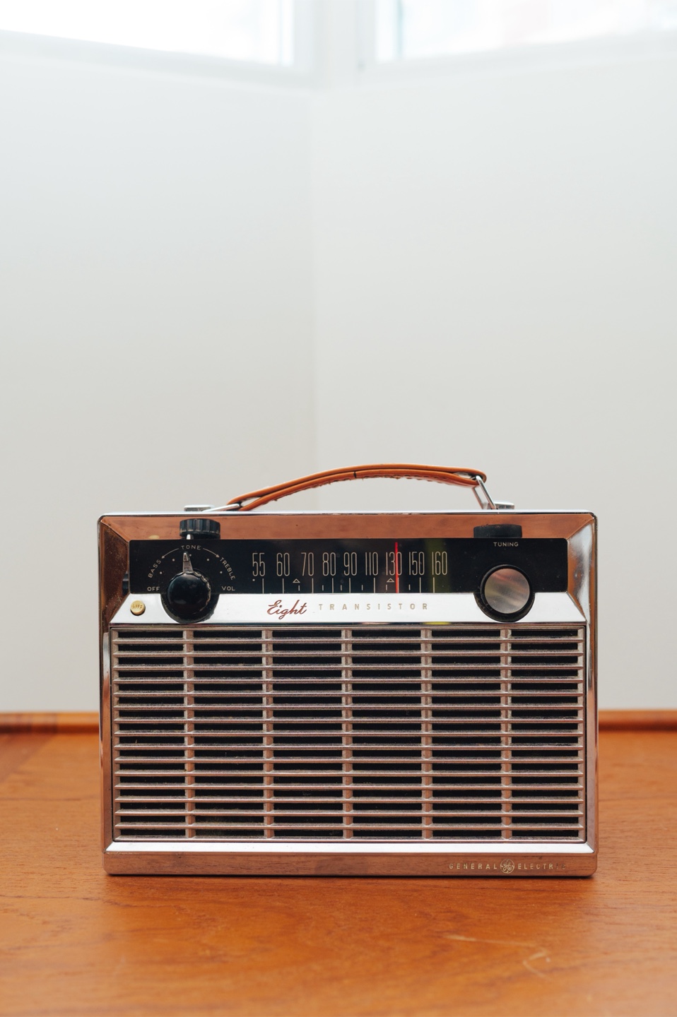 Chrome, leatherette, and classic midcentury lines β this GE portable AM radio captures the optimism of the Space Age.