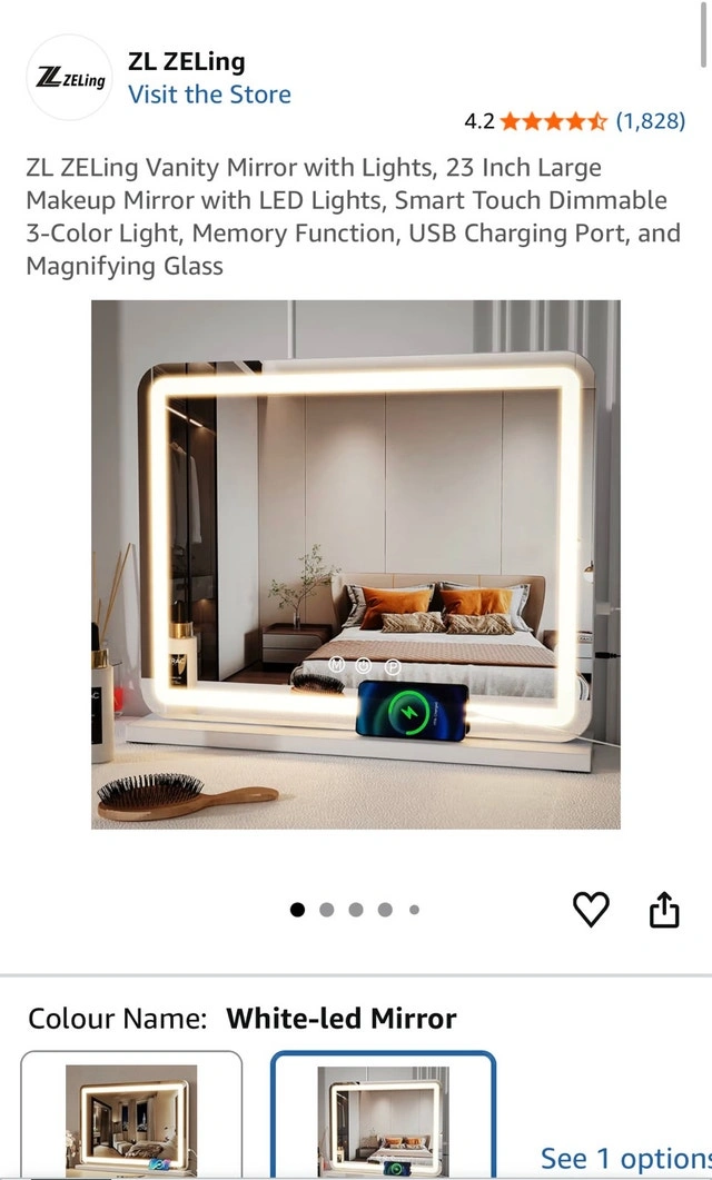 Brighten up your getting-ready routine with this ZL Zeling vanity mirror, featuring LED lights and a smart touch dimmable function for the perfect glow! This mirror is in excellent condition, ready to bring a touch of Hollywood glamour to your space. Additional features include: * 23-inch Large Makeup Mirror * 3-Color Light Options * Memory Function * USB Charging Port * Magnifying Glass. I'm pricing this at $150. If the ad is up, the mirror is available. Let me know if you're interested!