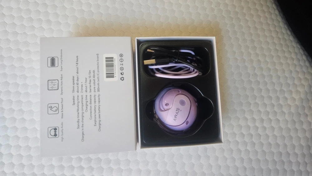 Selling a pair of AWAZE Sound Labs X15 Pro true wireless Bluetooth earphones in a lovely lilac colour! Comes in the original box with the charging cable and lanyard.