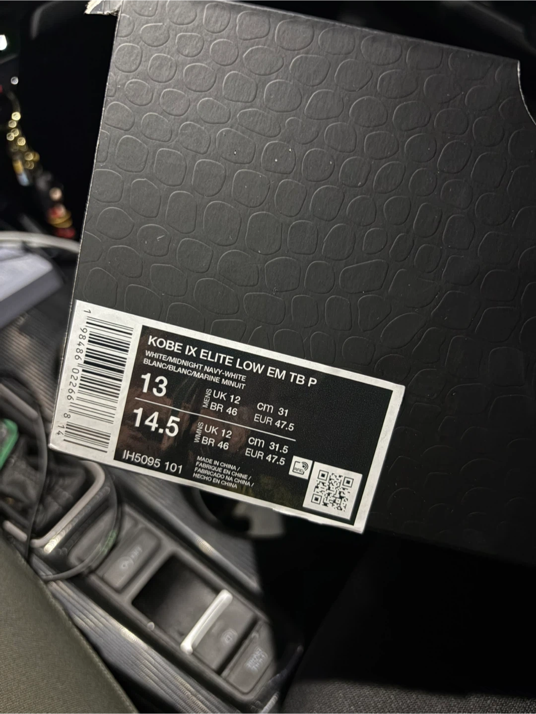Selling a pair of Nike Kobe IX Elite Low EM TB P sneakers in white and navy! They are a size 13 US. The box is included!