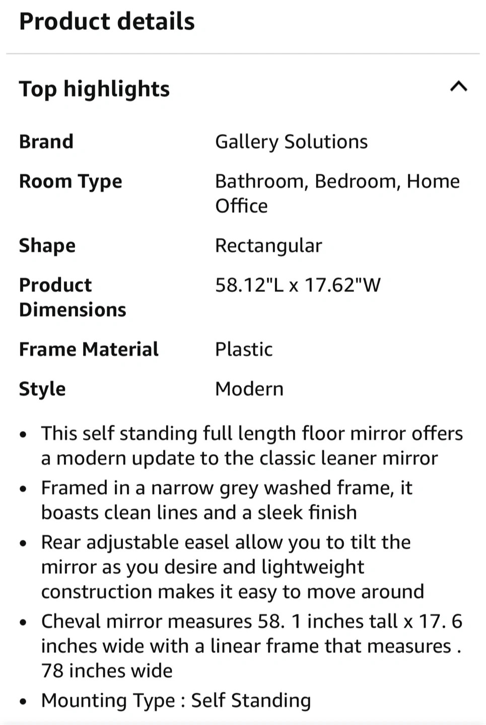 White Frame Free Standing Mirror