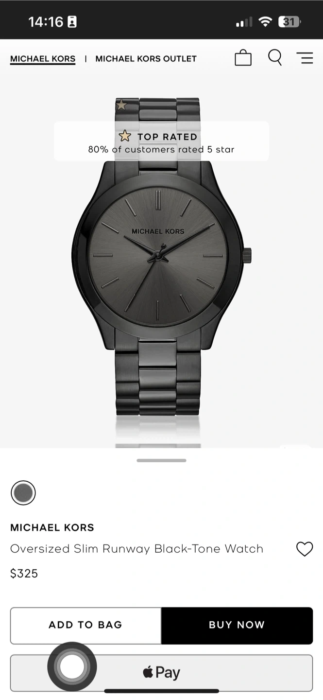 Selling a Michael Kors Oversized Slim Runway watch in black-tone. It's a stylish and sleek timepiece that would make a great addition to any outfit. Originally bought for $325!