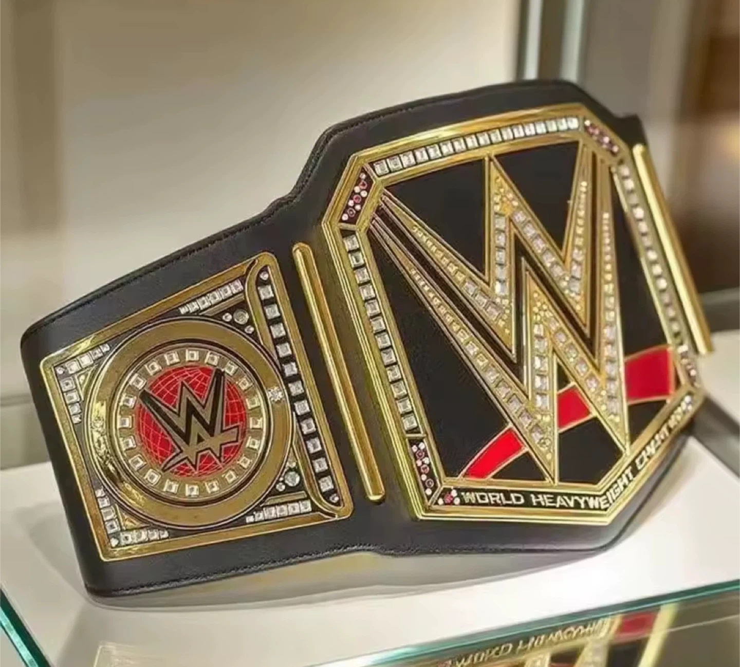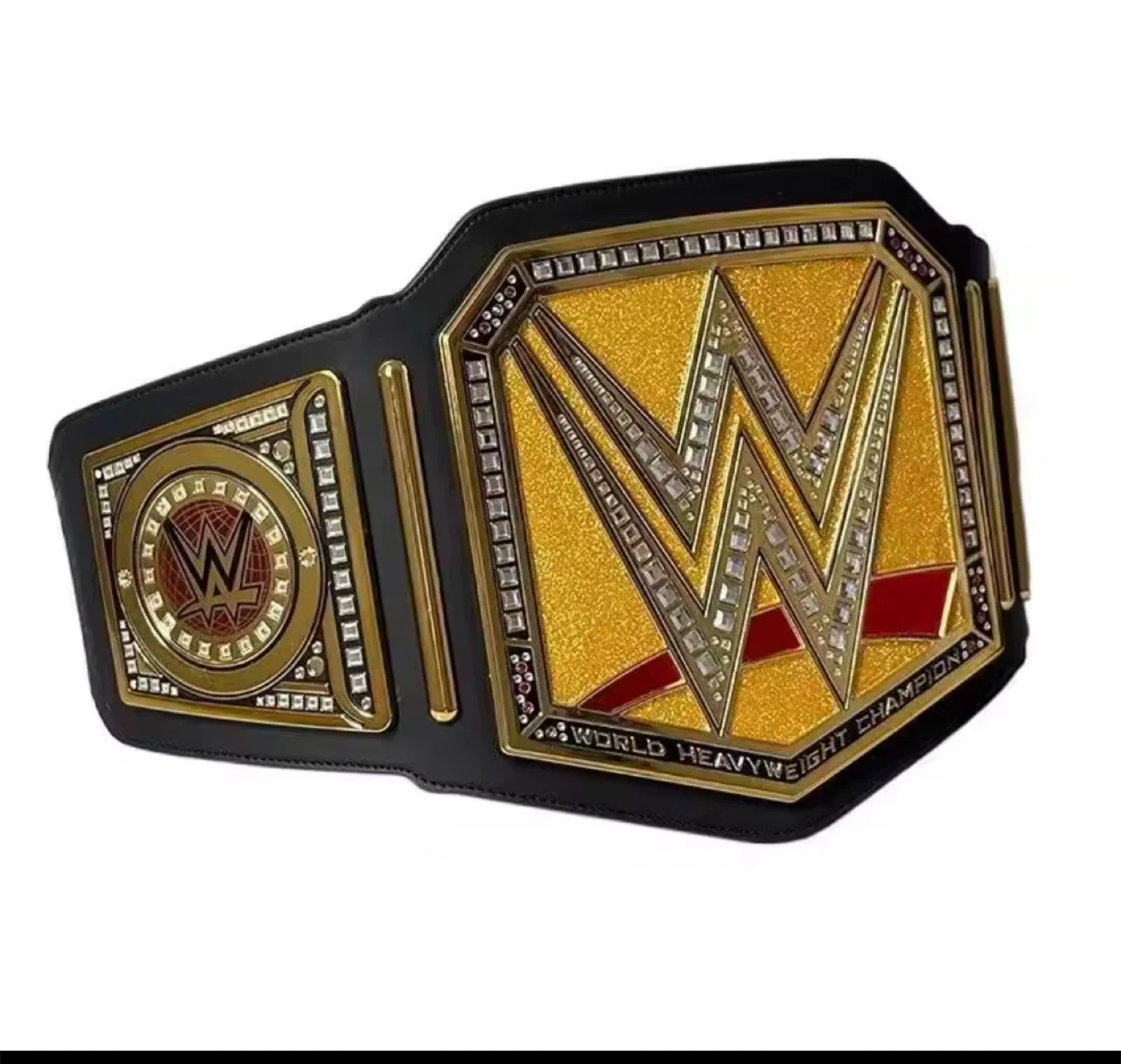 Selling a WWE World Heavyweight Championship belt. It looks like a replica. It features the WWE logo and intricate detailing. Great for wrestling fans or collectors!