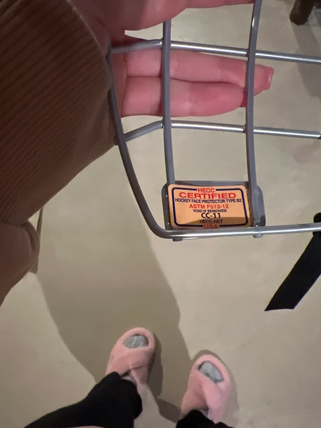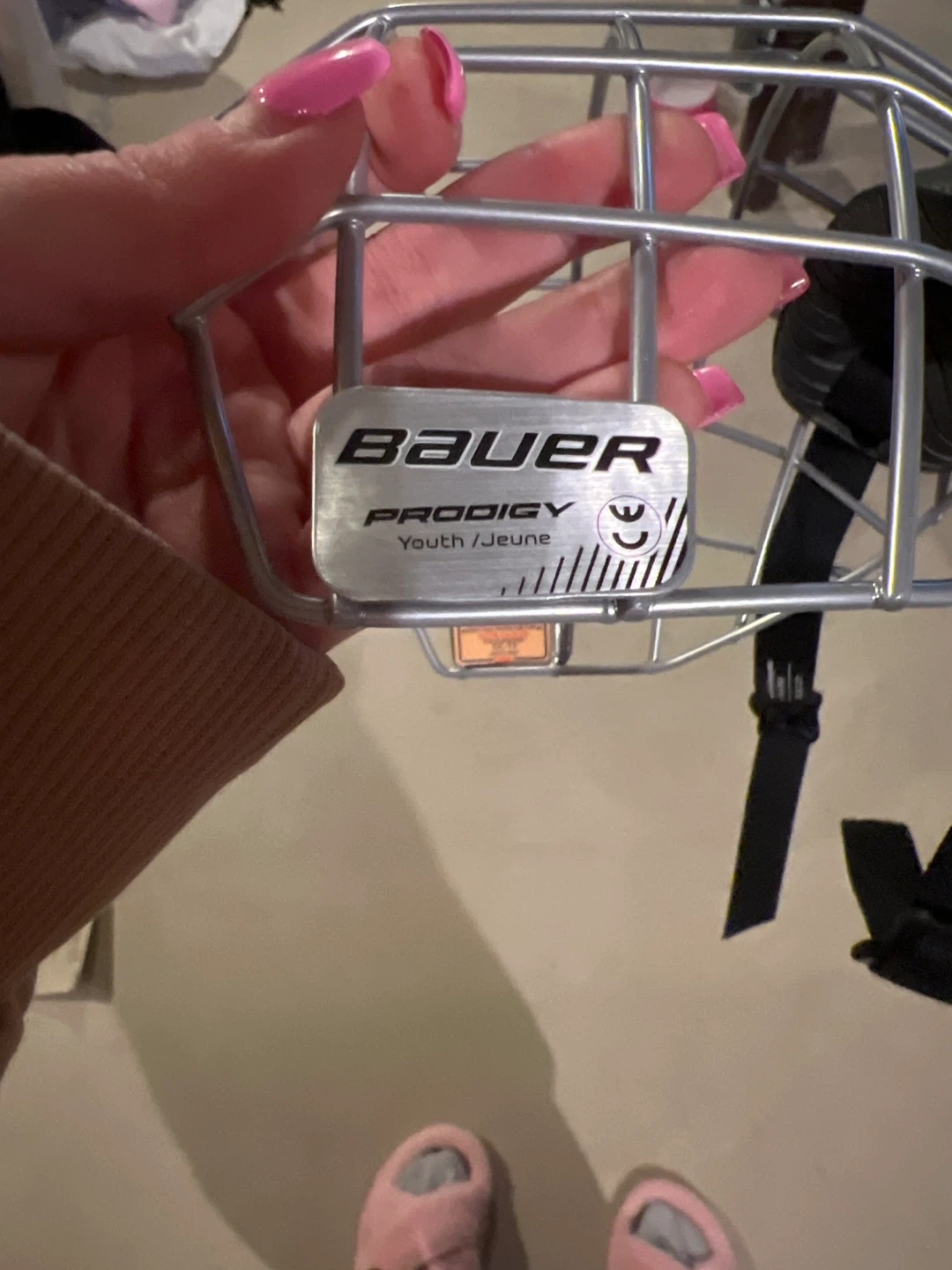 Selling a Bauer hockey helmet with a face cage. The helmet is black and the cage is silver. It has HECC Certified Hockey Player Helmet ASTM F1045-16 Valid Until End DEC 2026.