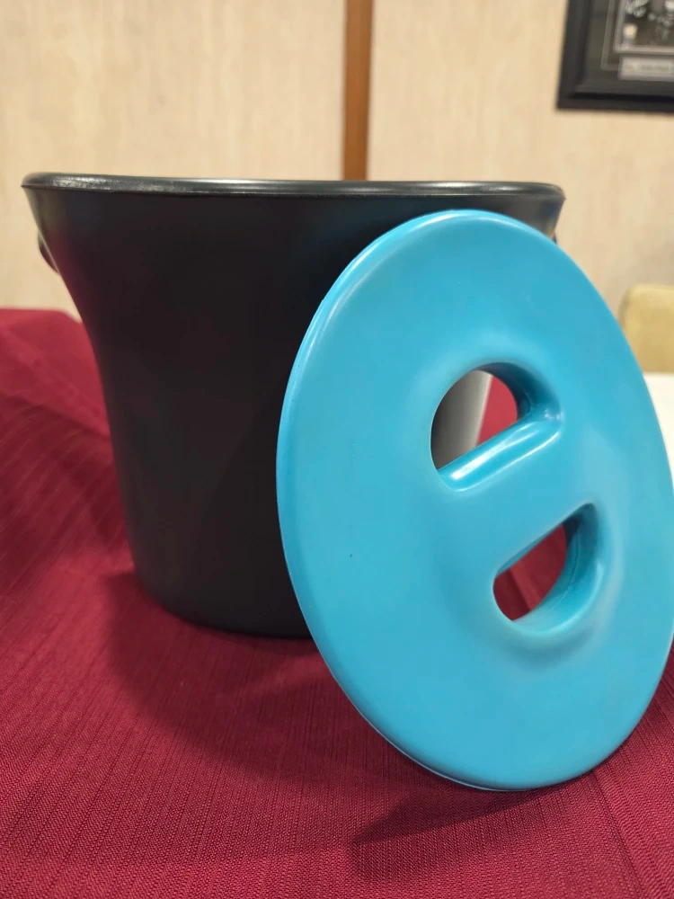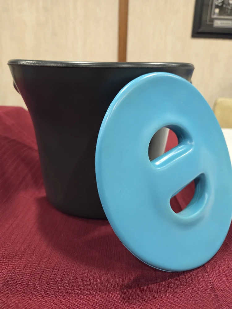Selling an ice bucket with a lid. It's in great shape and ready to keep your drinks cool! The bucket is black, and the lid is a nice bright blue colour