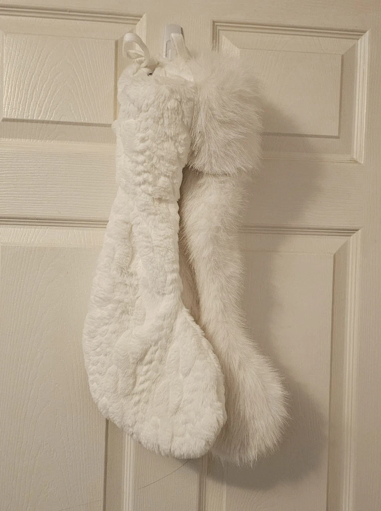 These 2 White Martha Stewart Faux Fur Christmas Stockings are Brand New and never used. No tags attached.