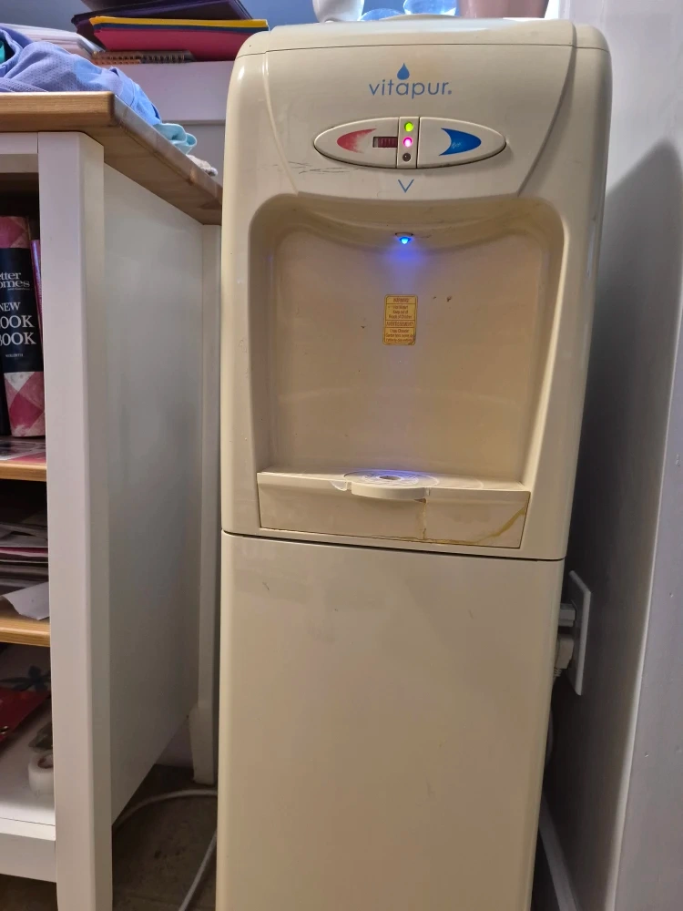 Selling a Vitapur water dispenser that also has a built-in fridge! It's perfect for keeping your water cold and refreshing, and the fridge is great for storing drinks or snacks. It's in good condition and ready to use