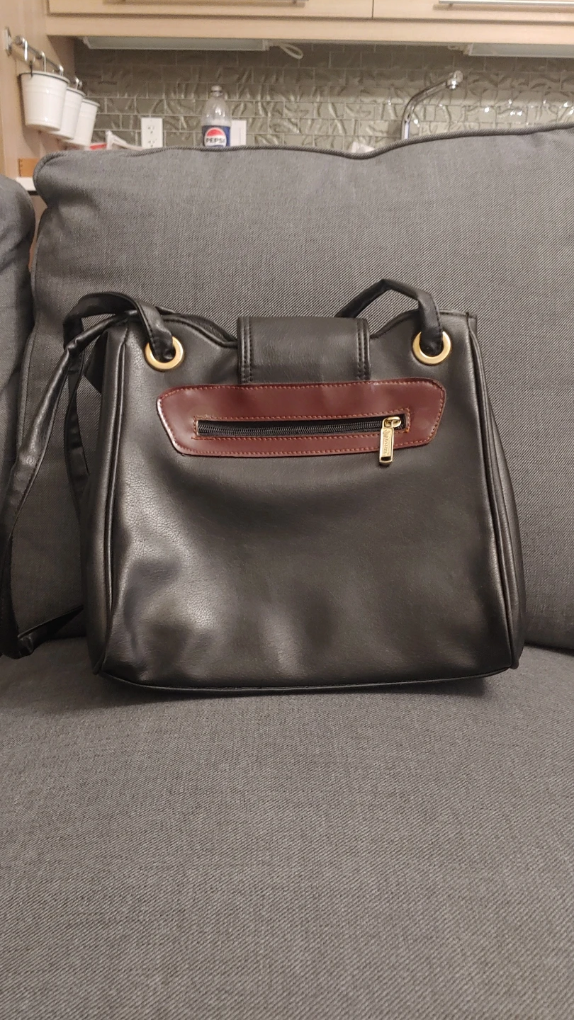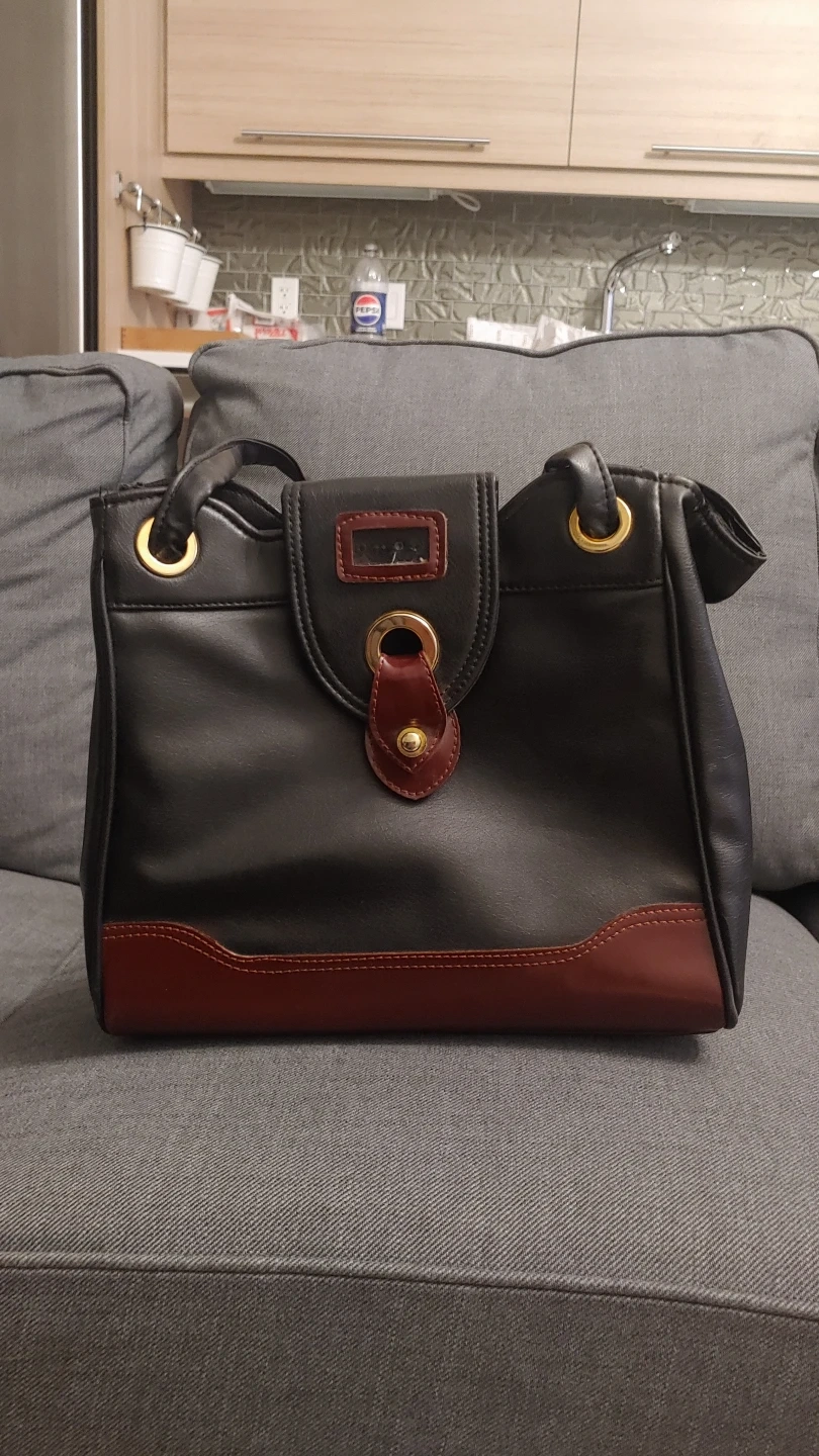 Selling a hand bag in black and brown leather.