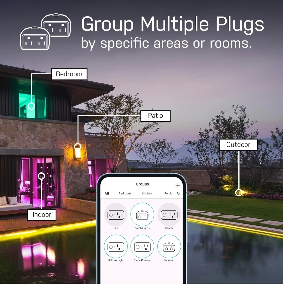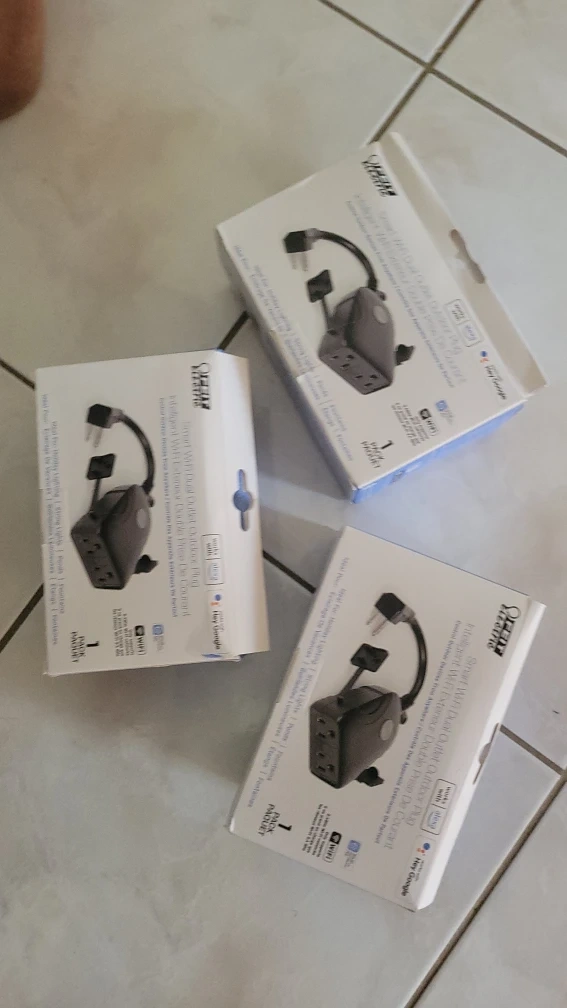 Selling a Feit Electric Smart WiFi Dual Outlet Outdoor Plug! It's weather resistant and wet location rated, making it perfect for holiday lighting, string lights, ponds, and fountains. It also works with Alexa and Hey Google. Control outdoor devices from anywhere with remote access, voice control, scheduling, countdown timer, device sharing, and grouping