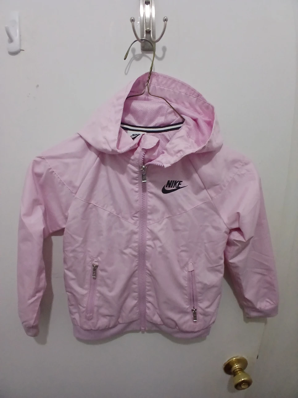 Selling a cute pink Nike Windrunner jacket! It's in great condition and perfect for layering. The jacket features the classic Nike logo and a full zip closure. Great for keeping your little one warm and stylish!