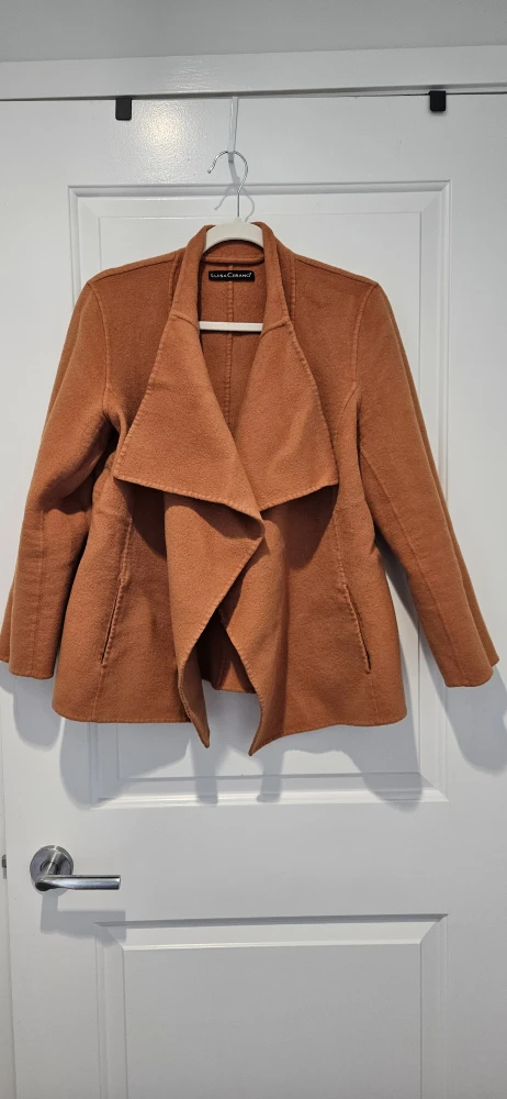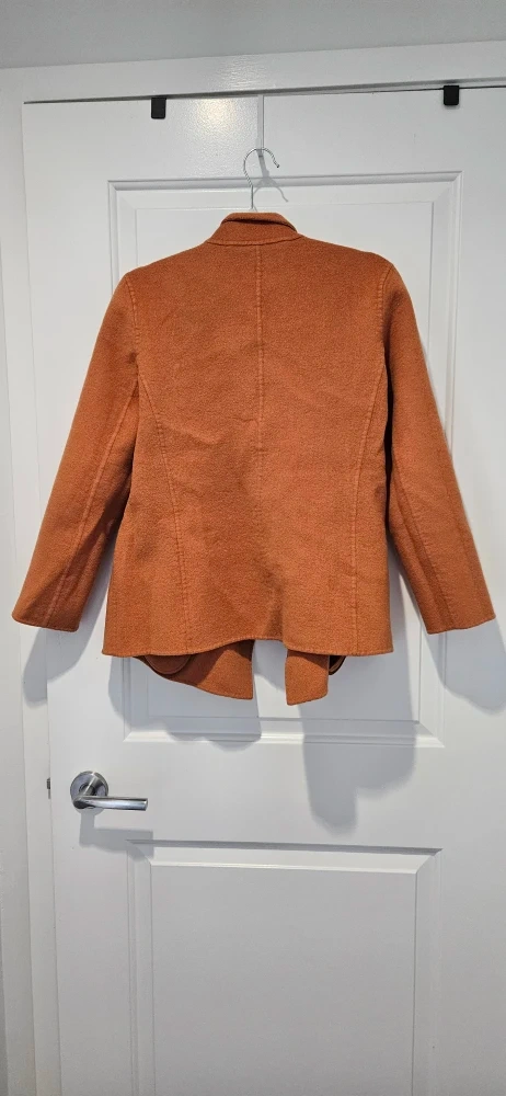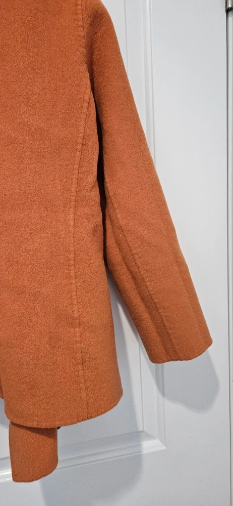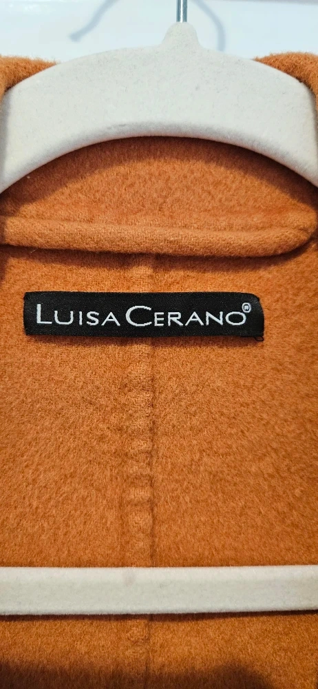 Selling a stylish and luxury brand, Luisa Cerano jacket in a lovely orange colour! It's in great condition and super warm and comfy. Perfect for work or a casual or formal evening in the winter or fall. Has a tie belt on the inside. Really elegant and sophisticated look.
