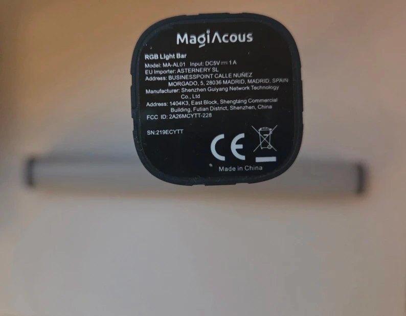 "Selling a MagiAcoustics RGB Light Bar, model number MA-AL01. Input is DC5V = 1A."