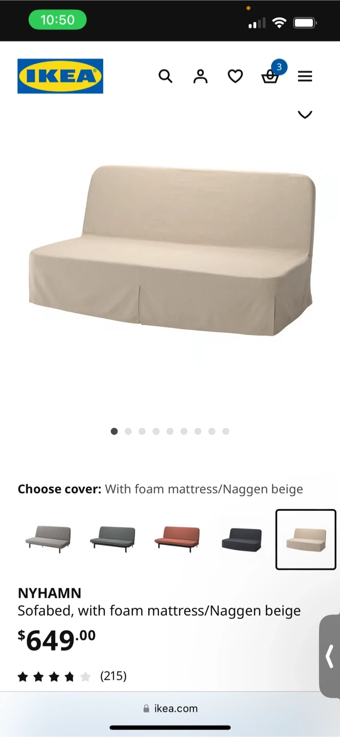 IKEA NYHAMN Sofa Bed – Beige (Excellent Condition)