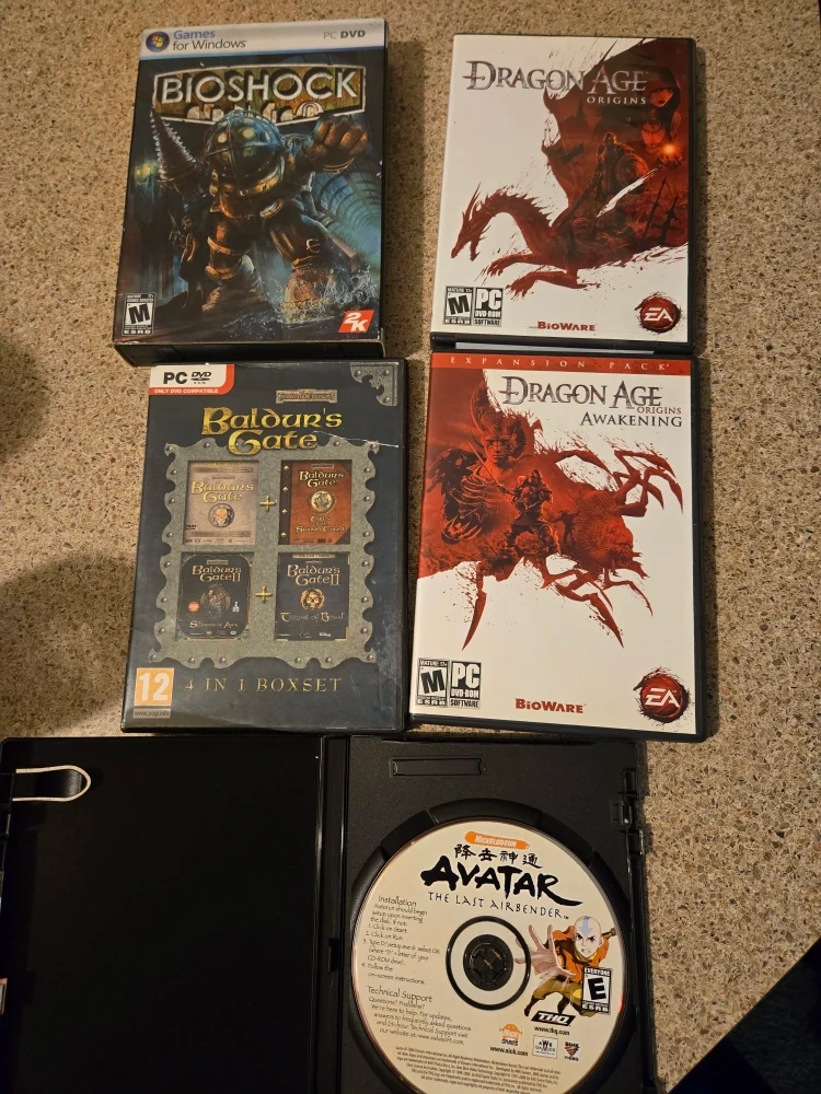 Selling a collection of PC games, including Bioshock, Dragon Age Origins, Dragon Age Origins Awakening (Expansion Pack), Baldur's Gate 4 in 1 Boxset, and Avatar The Last Airbender