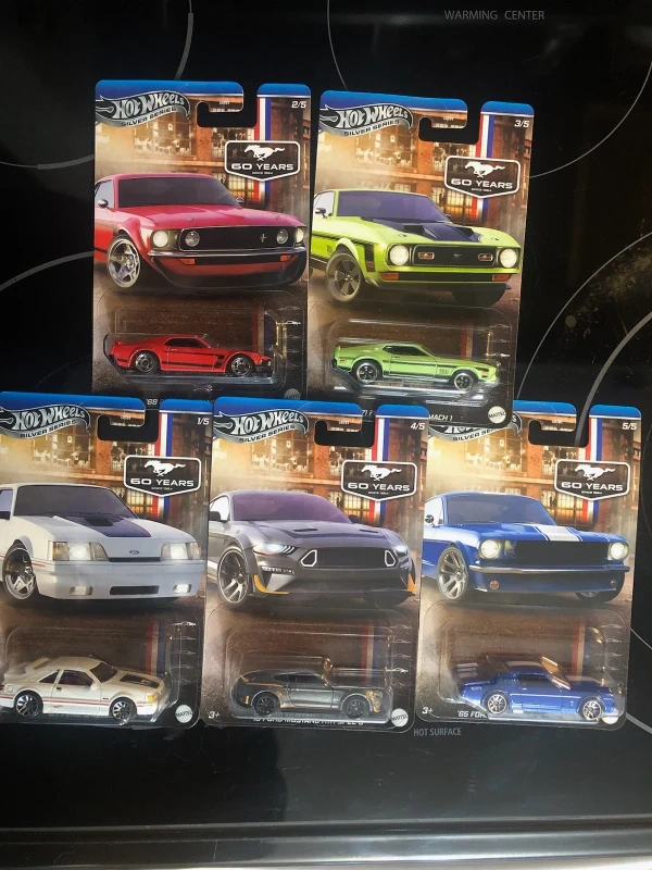 Selling a collection of Hot Wheels Silver Series cars celebrating 60 years of the Ford Mustang! Each car is still in its original packaging and ready for a new home. Perfect for collectors or anyone who loves classic cars!